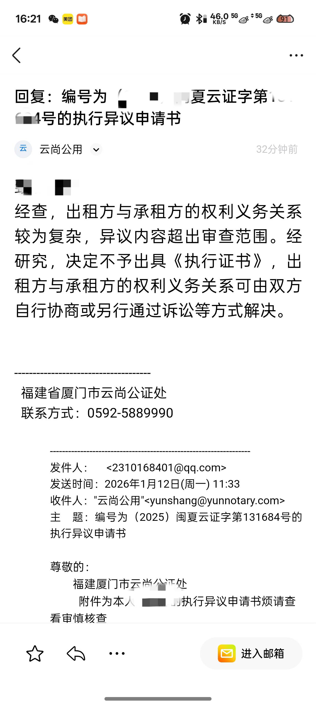 老哥们,问一下今天收到2家公证处的债务确认函,如果公证处出具强制执行书,多久会被