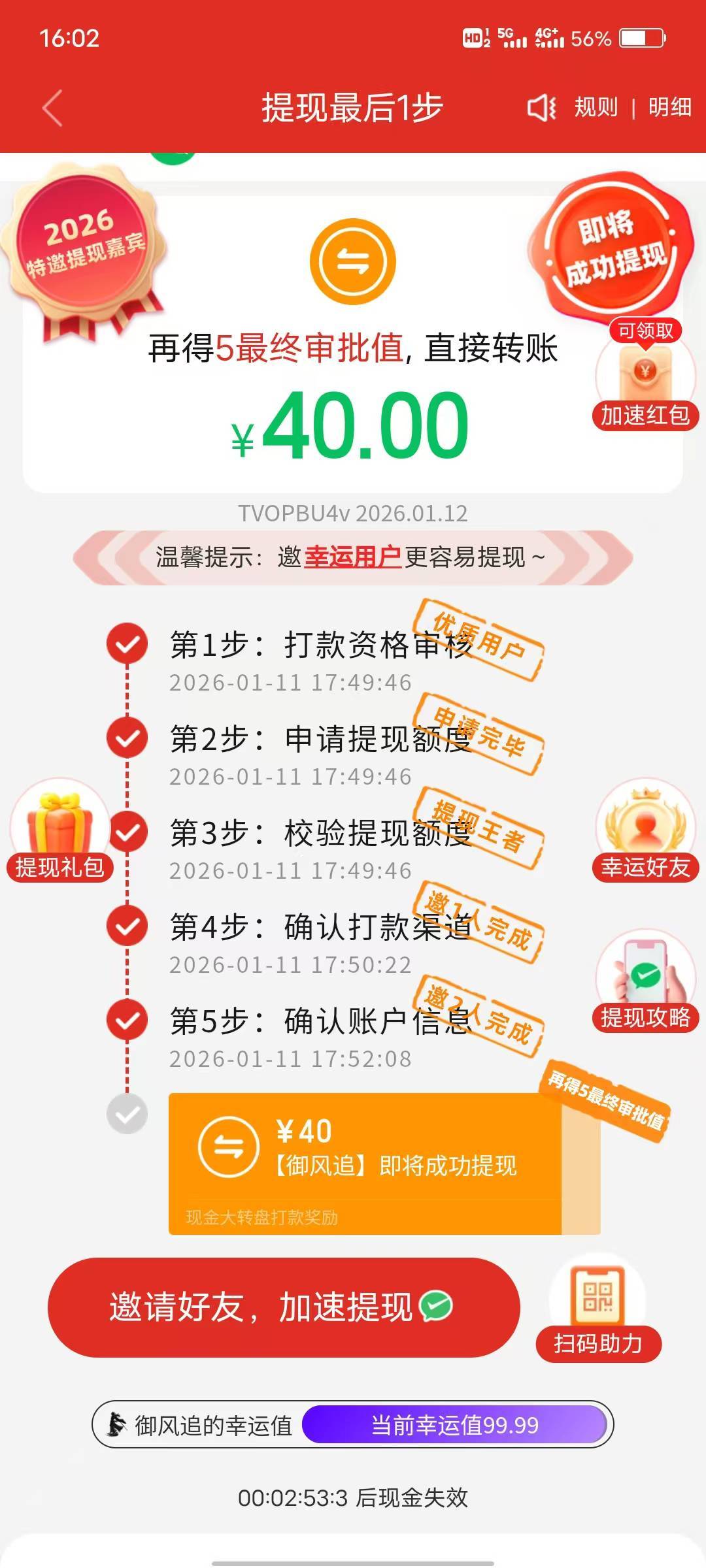 八呀七 发表于 2026-01-12 16:13 你这还早,过了后,还有提现积分。 提现积分后,是福卡。福卡最后一张全程看脸,拉了三十几人,几十抽都不给。福卡后面不知道还有没