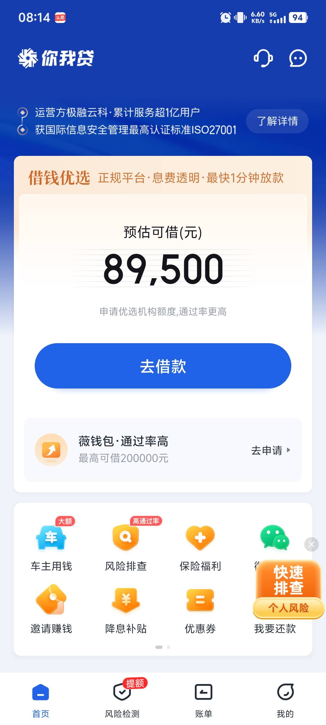 我也出来了3000申请提示没有服务方,退回去之后,首页额度就变成了中介额度