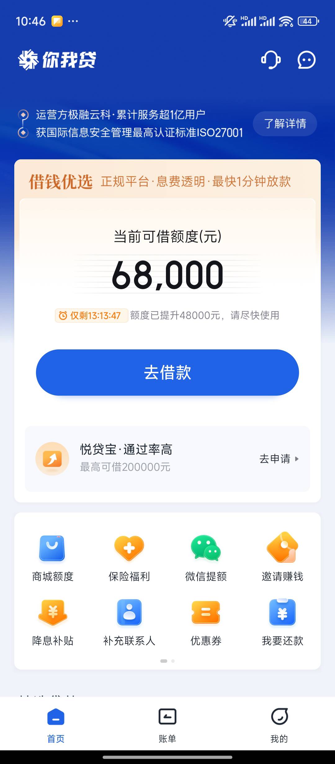 我额度比你高点咯。69500