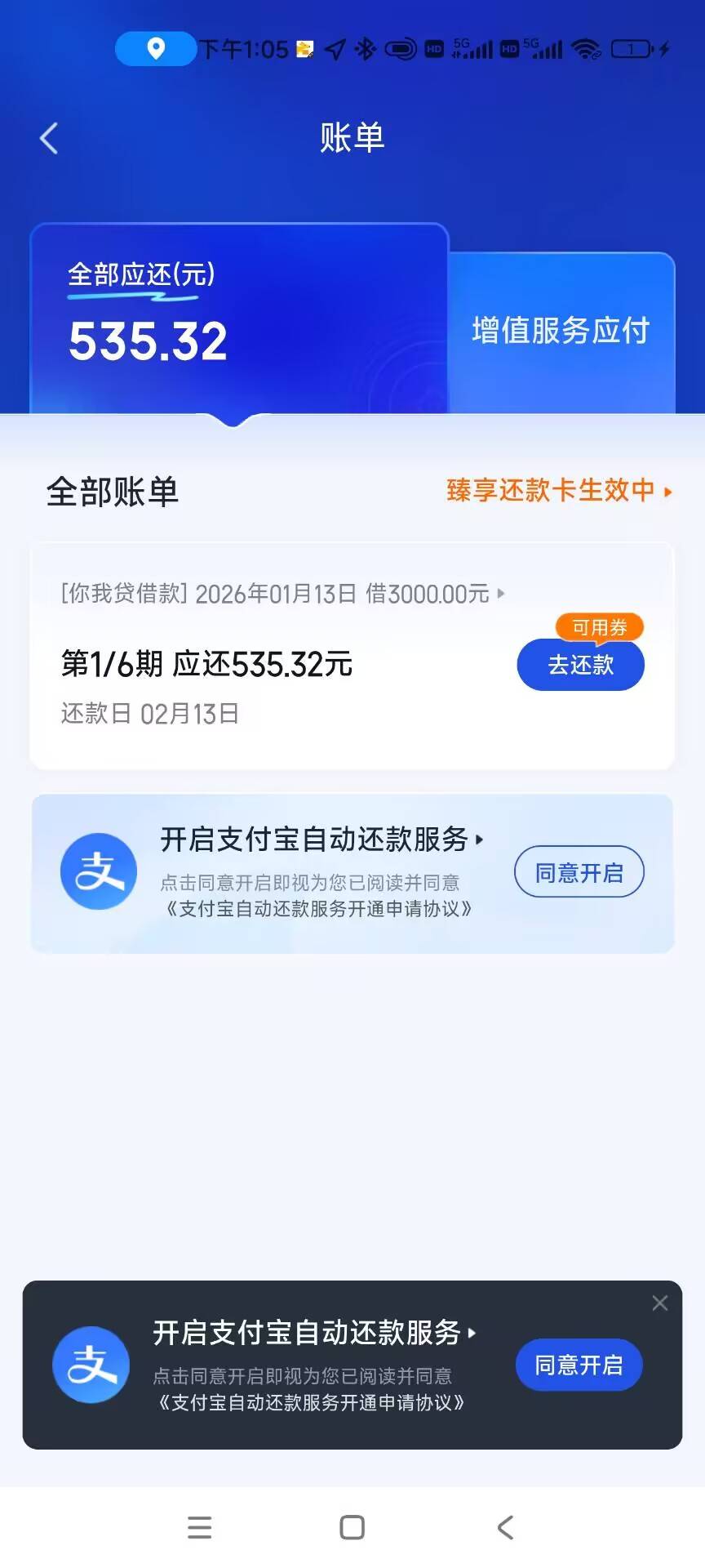 我还欠他五千没还