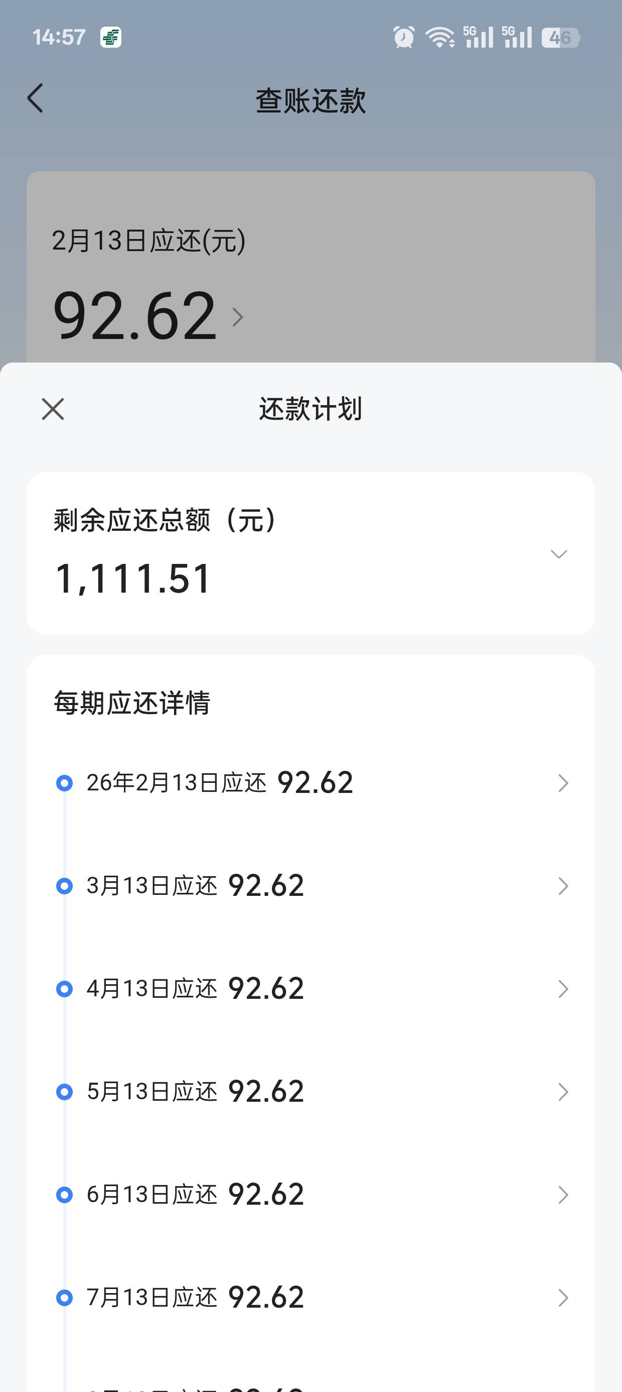我11月借的9000,还了2期了
