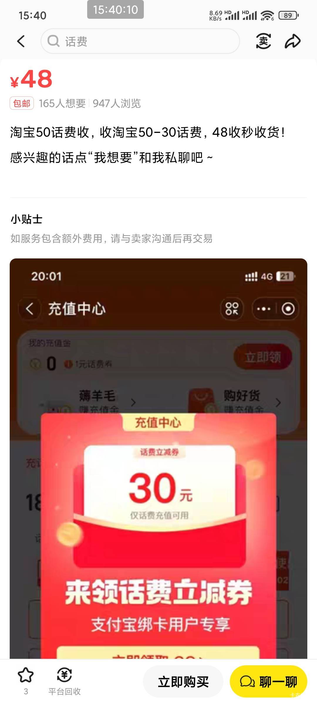 我看鱼上有人在收淘宝话费,这是又能申请了吗