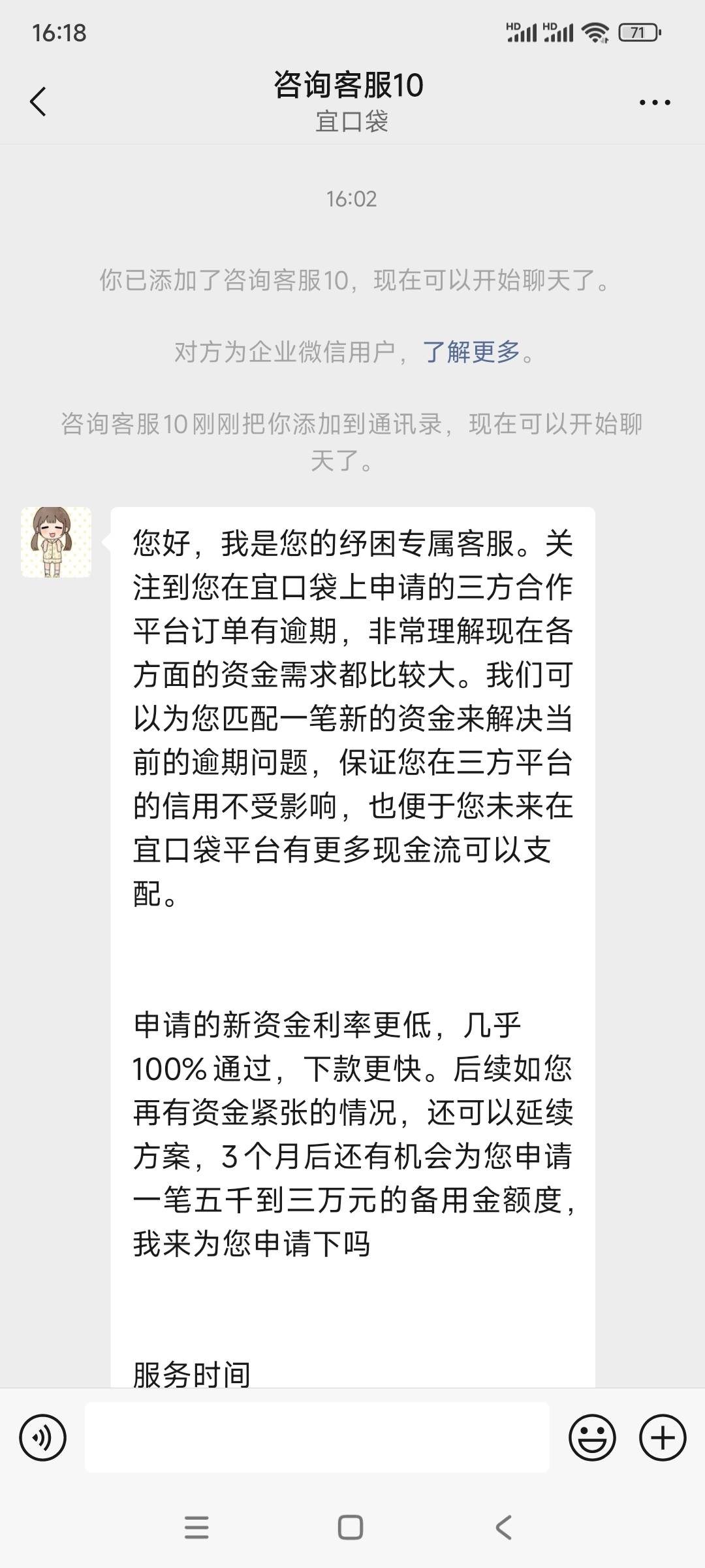 橙新贷第一笔和第二笔都是自己操作下款的,第三笔从7号下款失败之后一直就没有额度了,刚才出现了一个专属客服,加了之后跟他说话也没回,第一次找客服调整专属额度能成功吗?