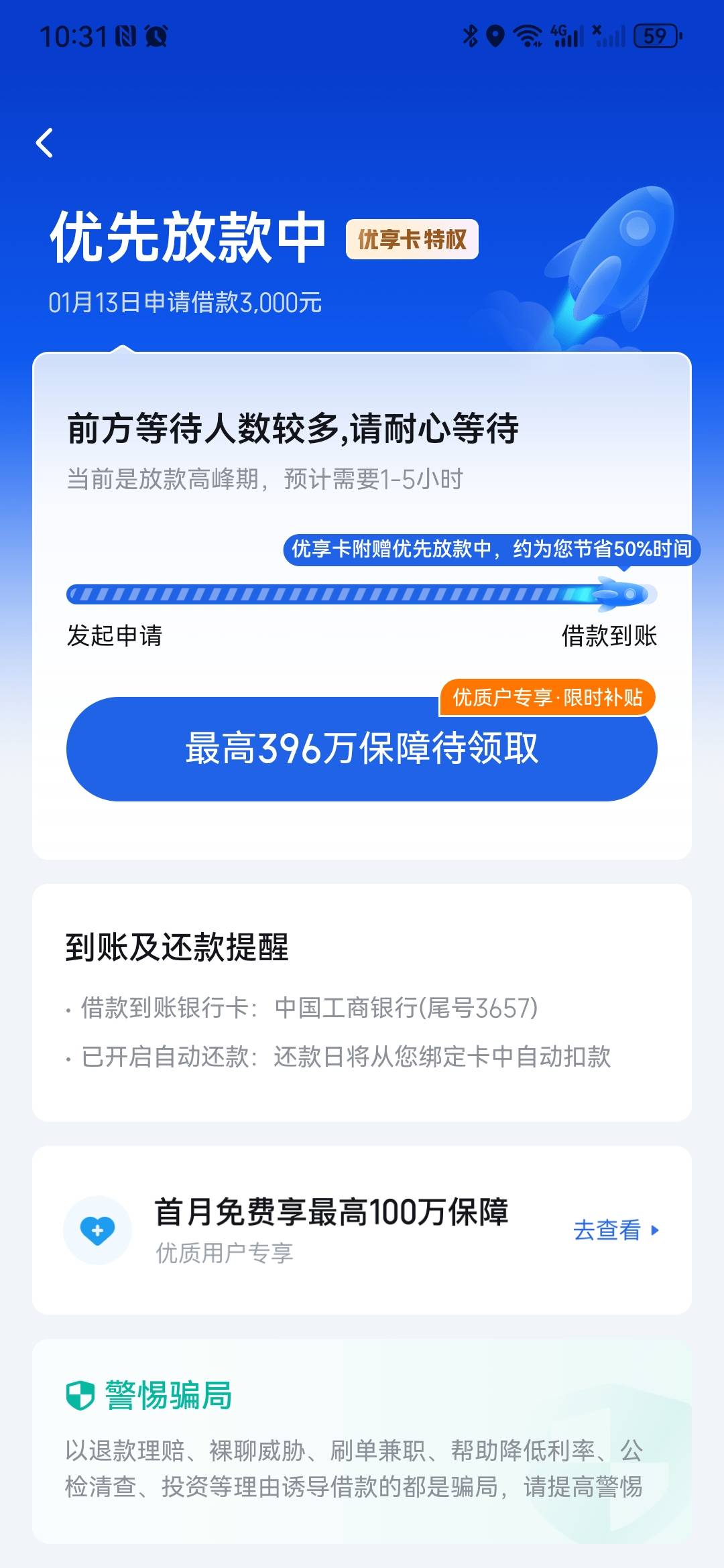 快了!我之前2笔秒到,这次早上6点申请,中午11点到的