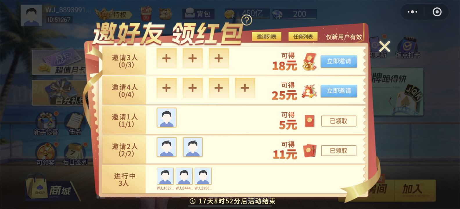 全民玩跑得快小程序邀好友领红包活动