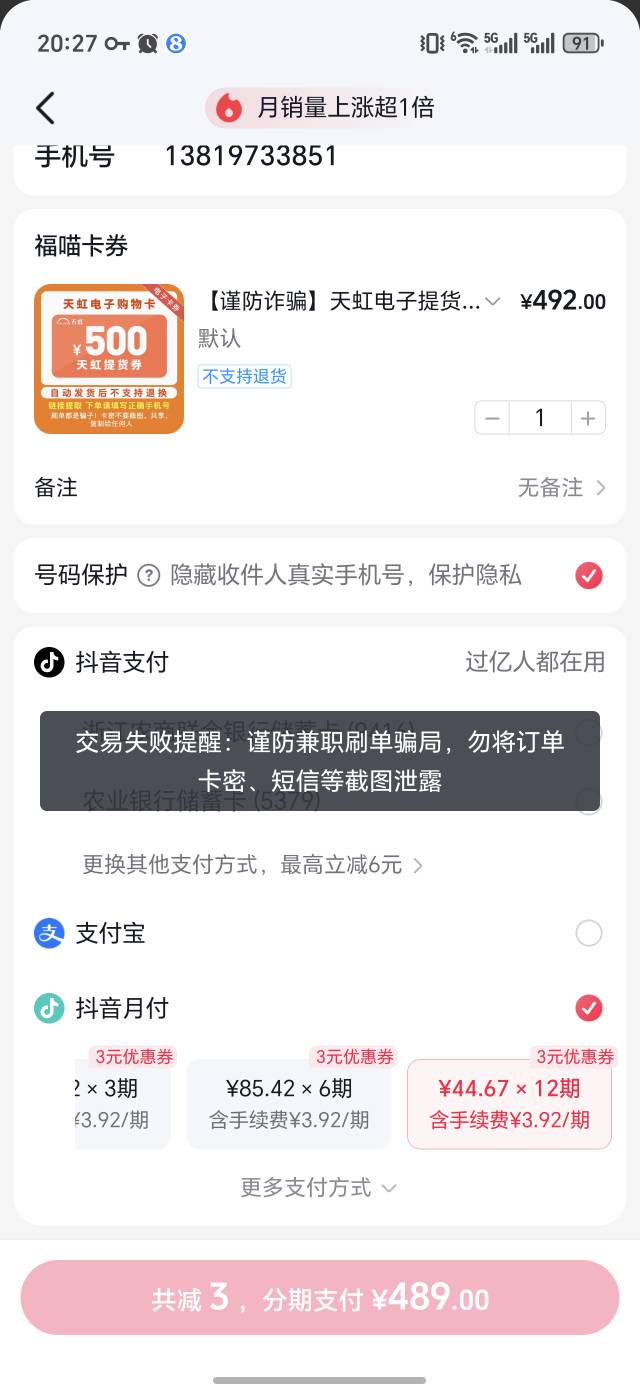 抖音月付为什么一直这样