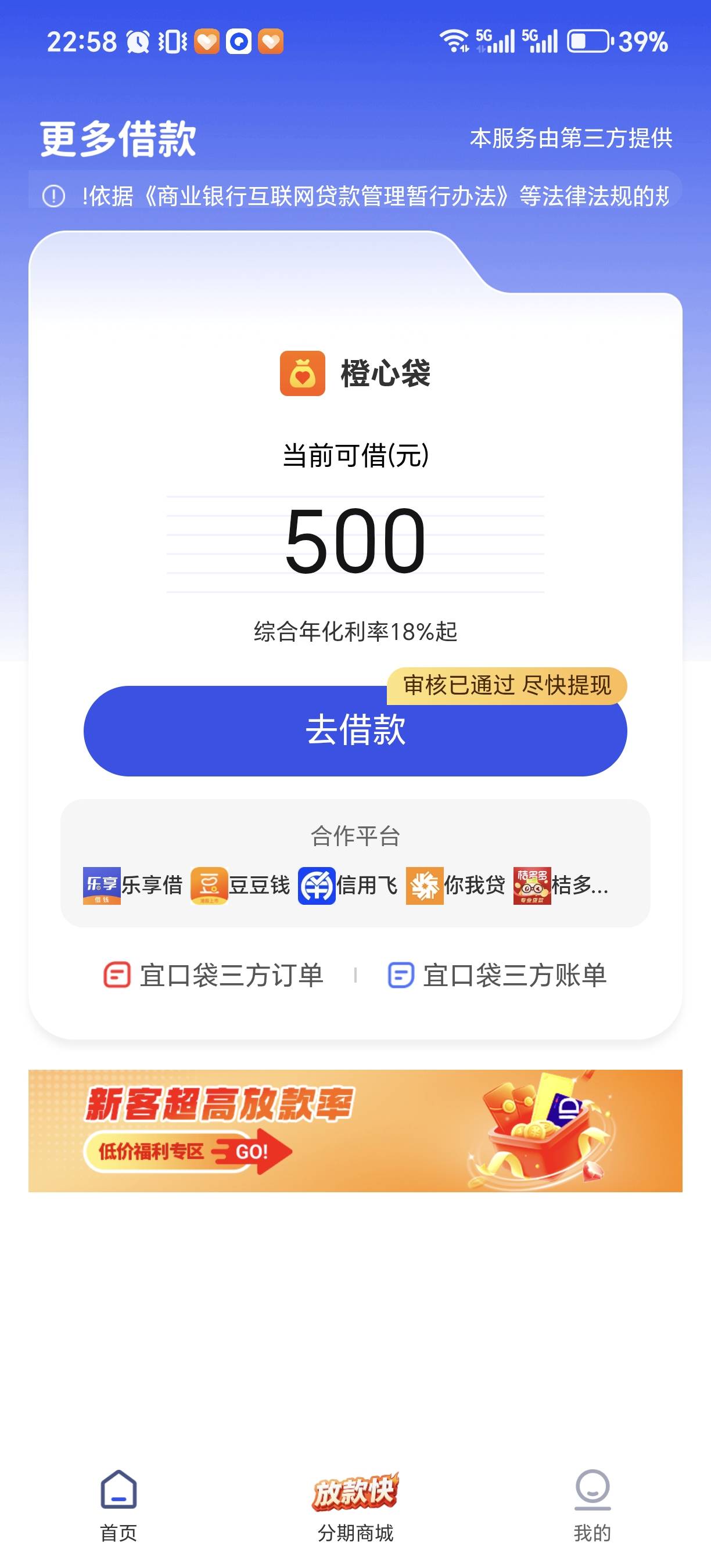 宜口袋第一次出额度怎么就500啊
