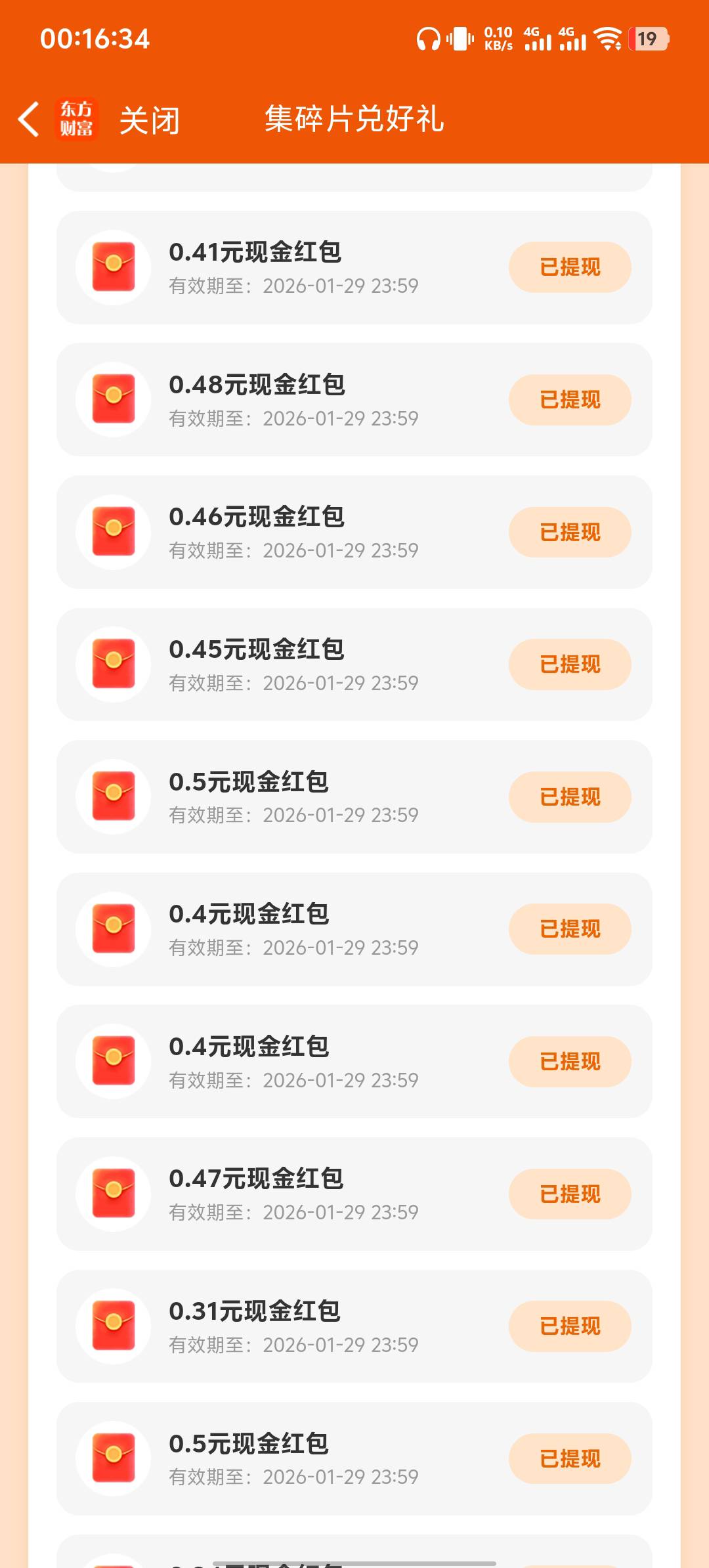 东方财富集碎片马上结束了,有碎片的赶紧兑换,5张兑的红包现在全是0.4以上