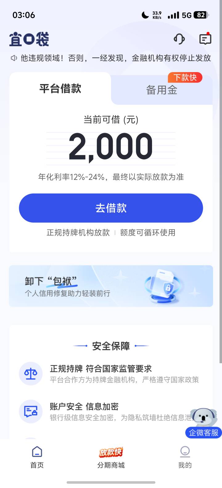 前两天还是一千但是借不了显示有失败订单过两天再来