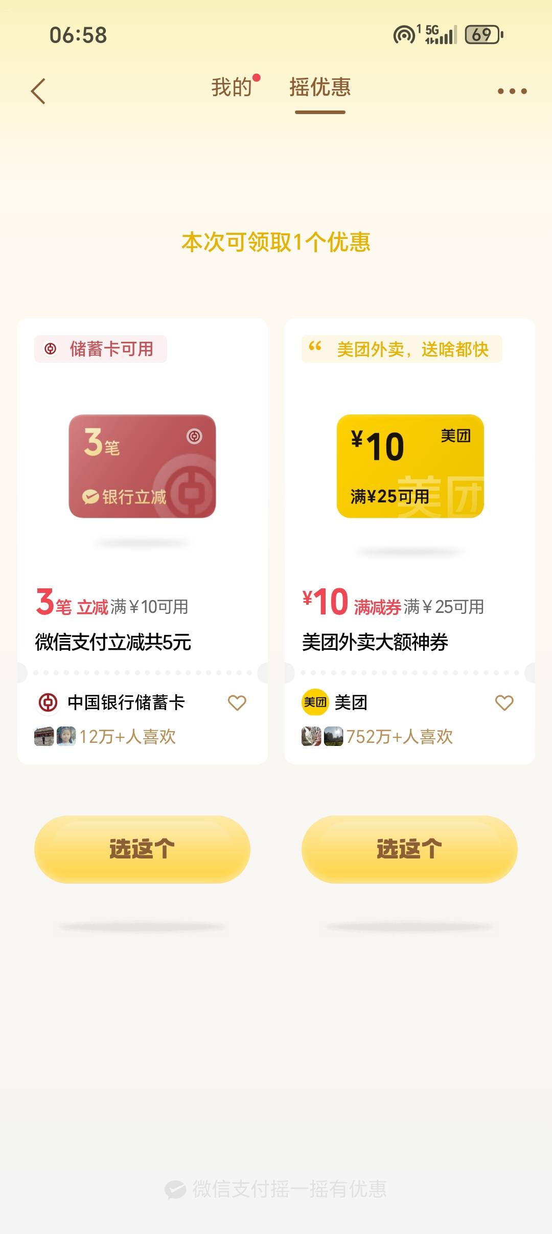 微信摇一摇中信银行信用卡微信支付多笔立减活动