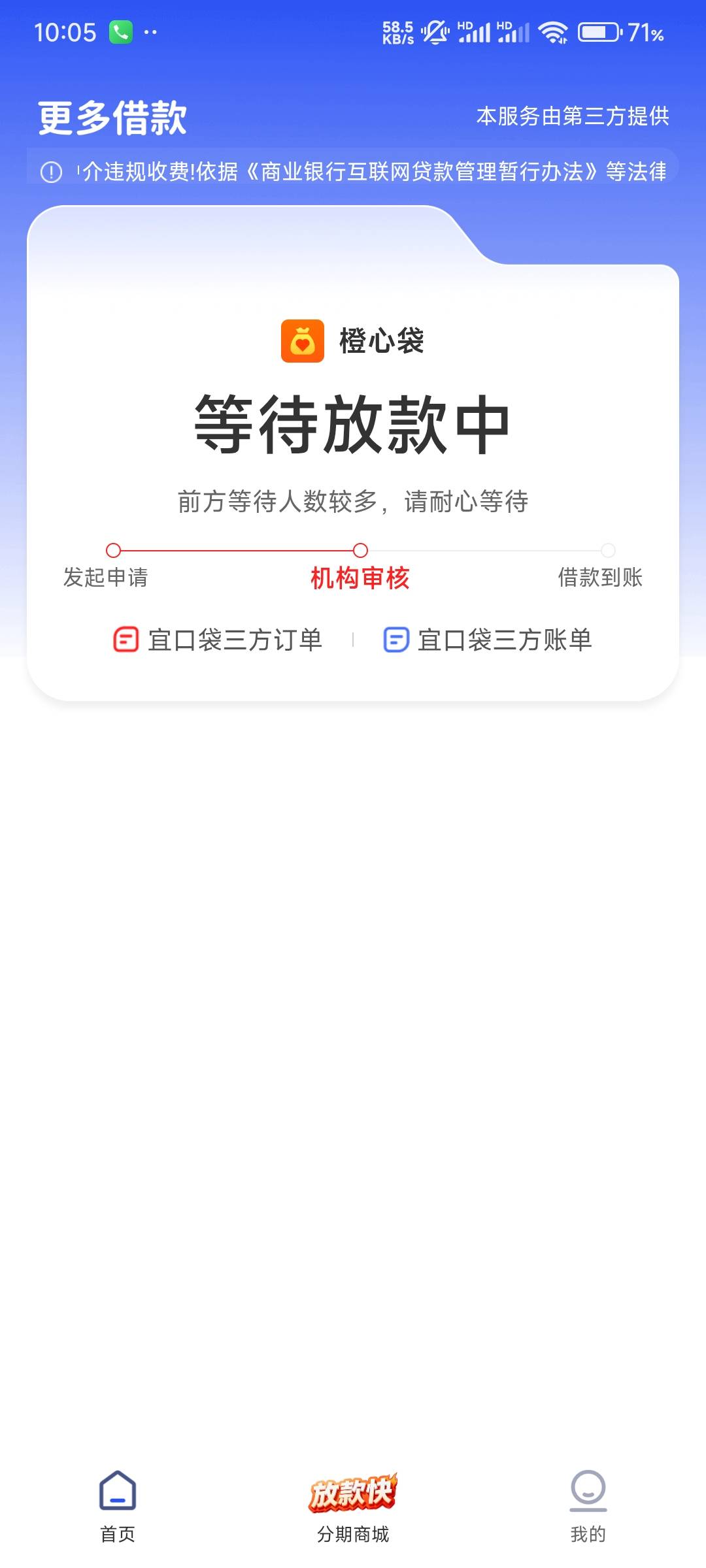 宜口袋本来1000审批没过,后来来短信了500一直放款中,两天了已经,根本找不到会员入口,估计悬了这笔