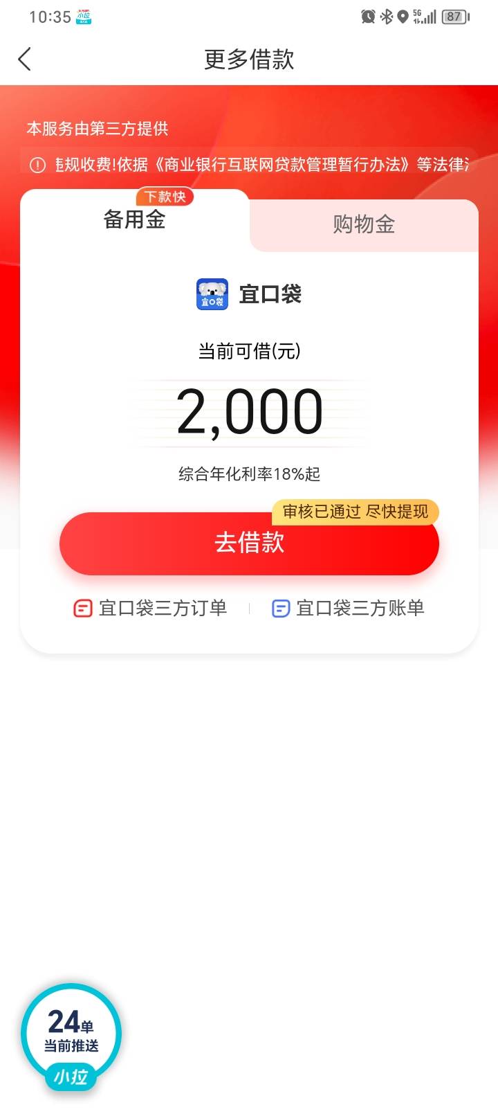 宜口袋,一个页面,前面买了立减金,原来1000,现在2000,跟你一个页面每次都是失败,老哥们说是还款日才下款,不知道真假