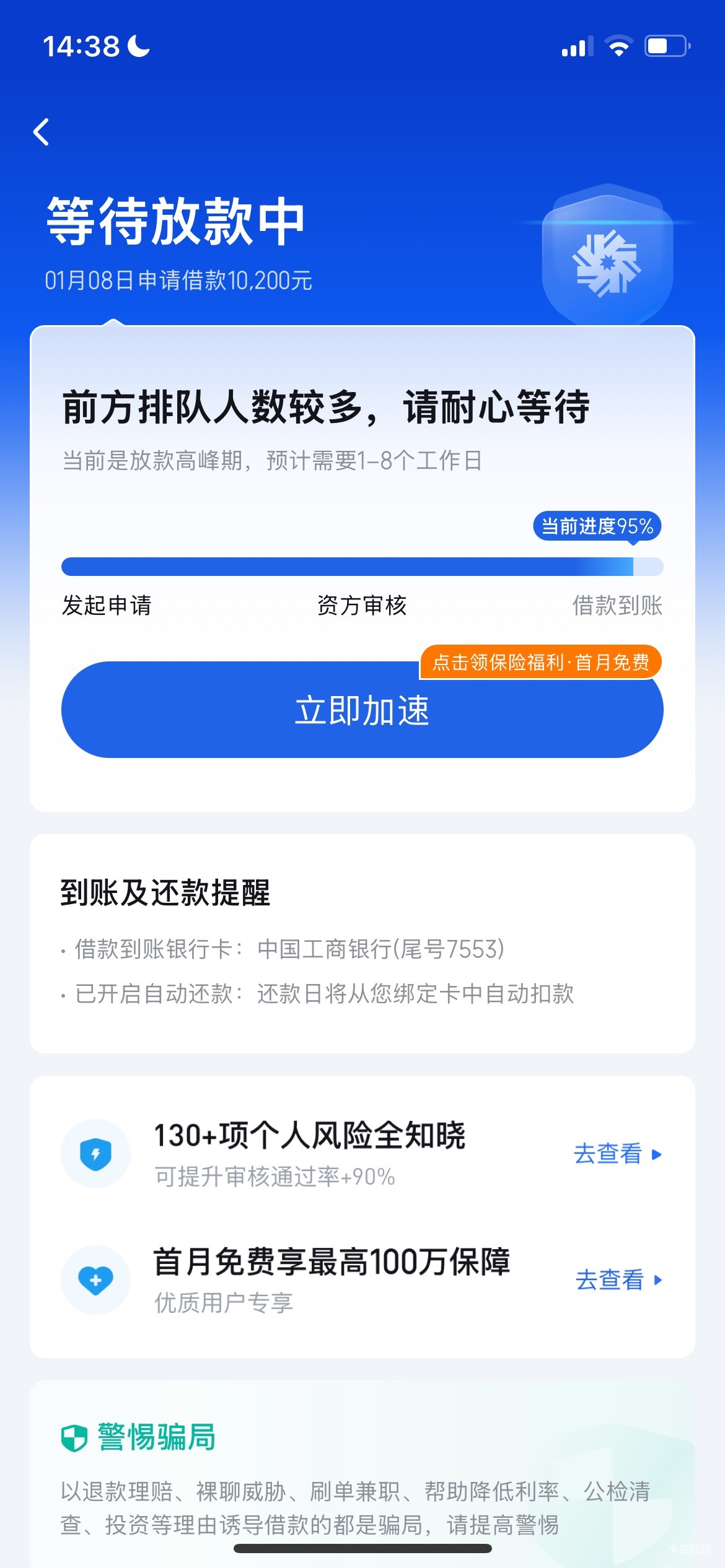 你我贷能到账不,卡在这里了。已经7天了。下款了随机几位老哥一瓶饮料