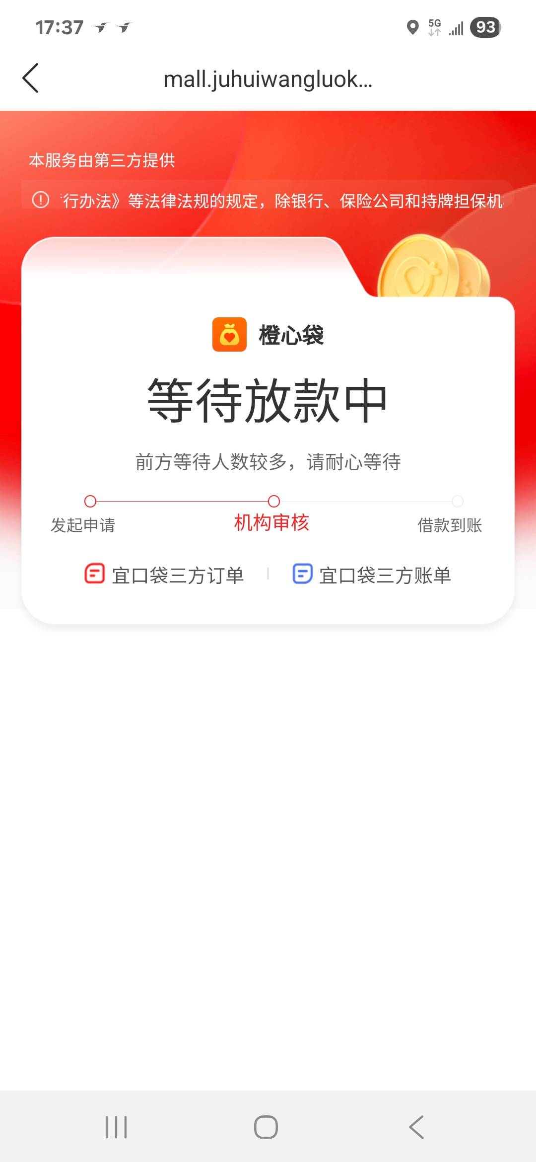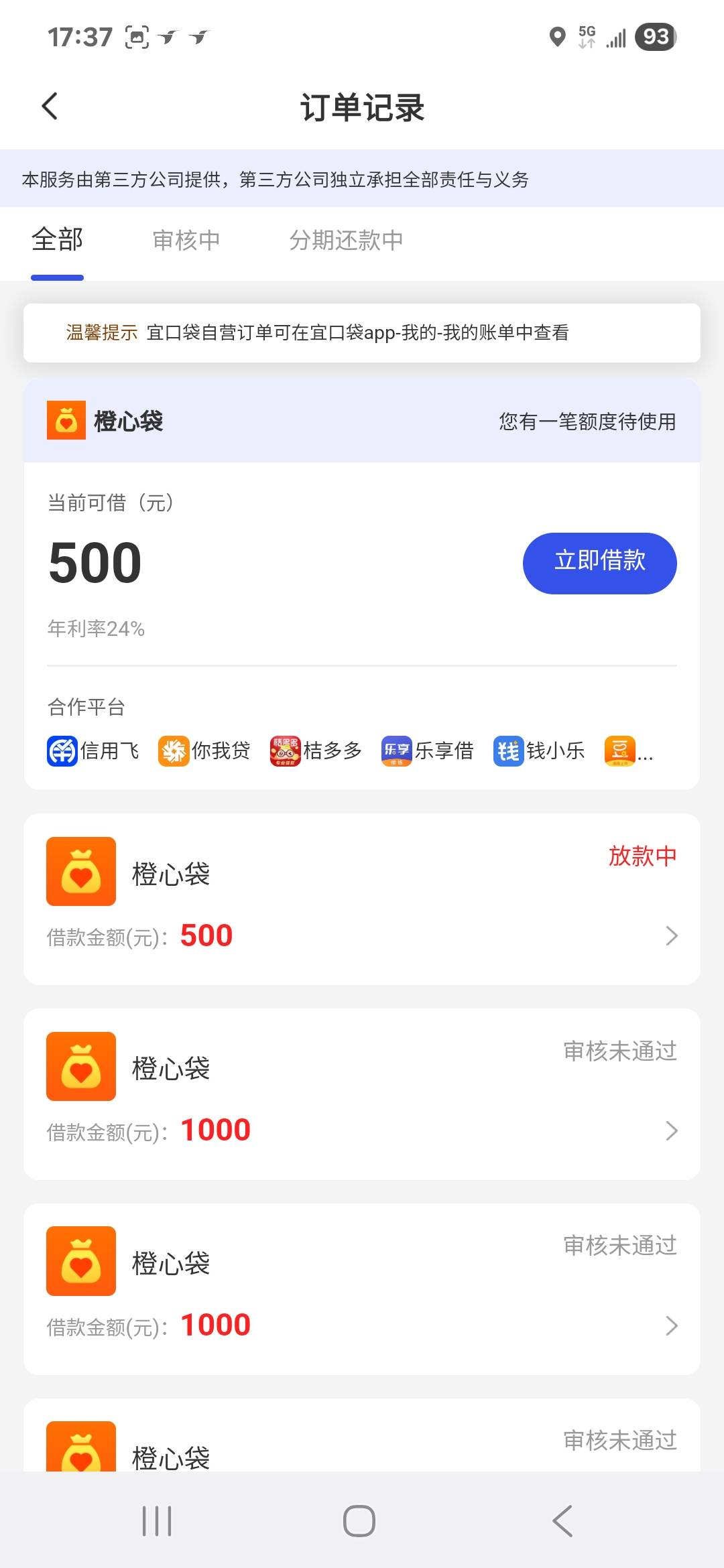 橙心贷之前一直都是秒拒,今天桔多多入口进去开了会员,然后审核中直到现在一直放款中