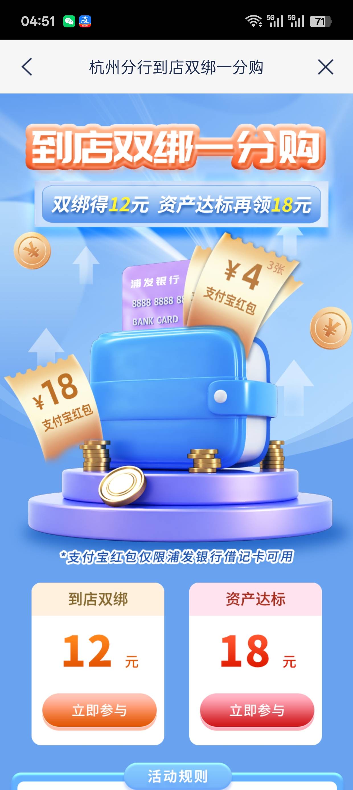 浦发银行杭州到店双绑一分购活动