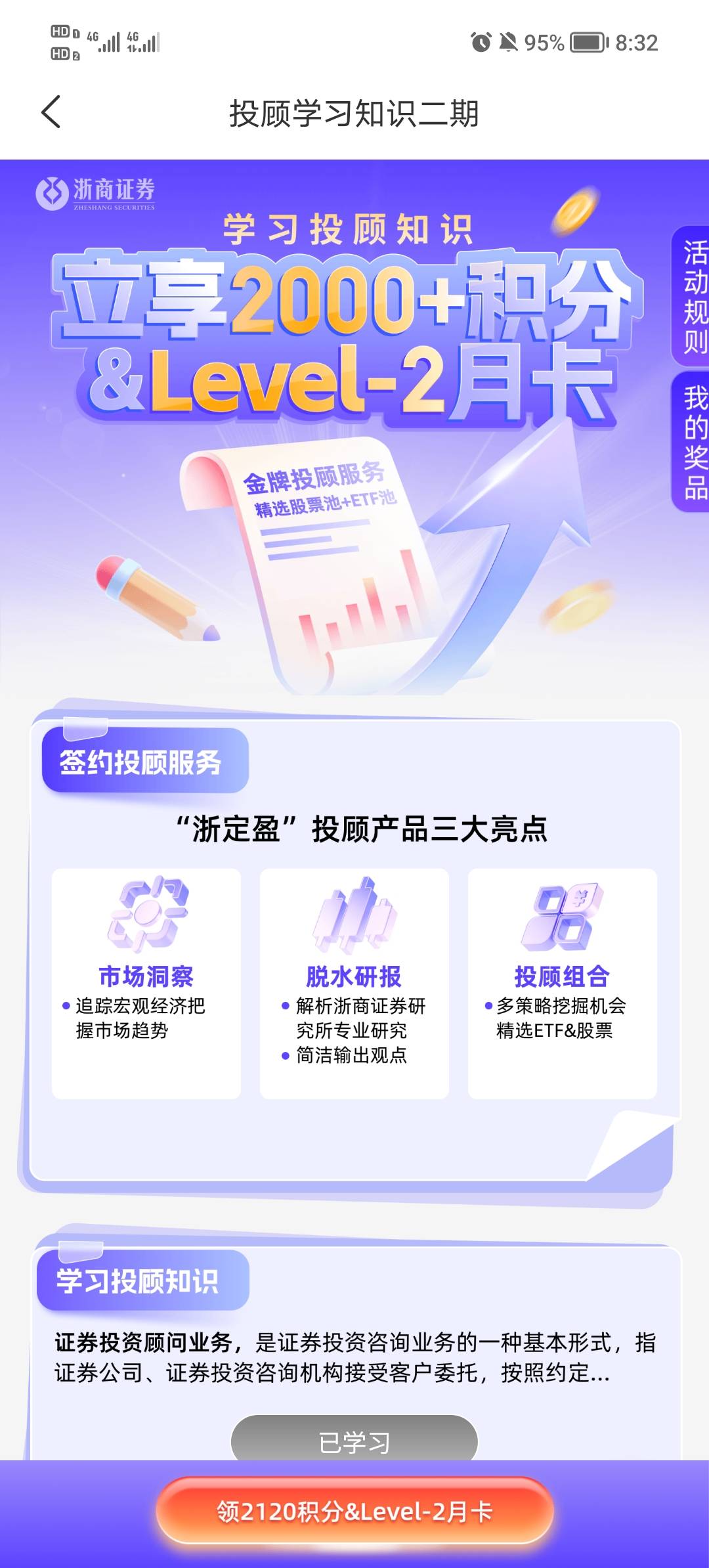 浙商证券学投顾知识立享2000积分活动