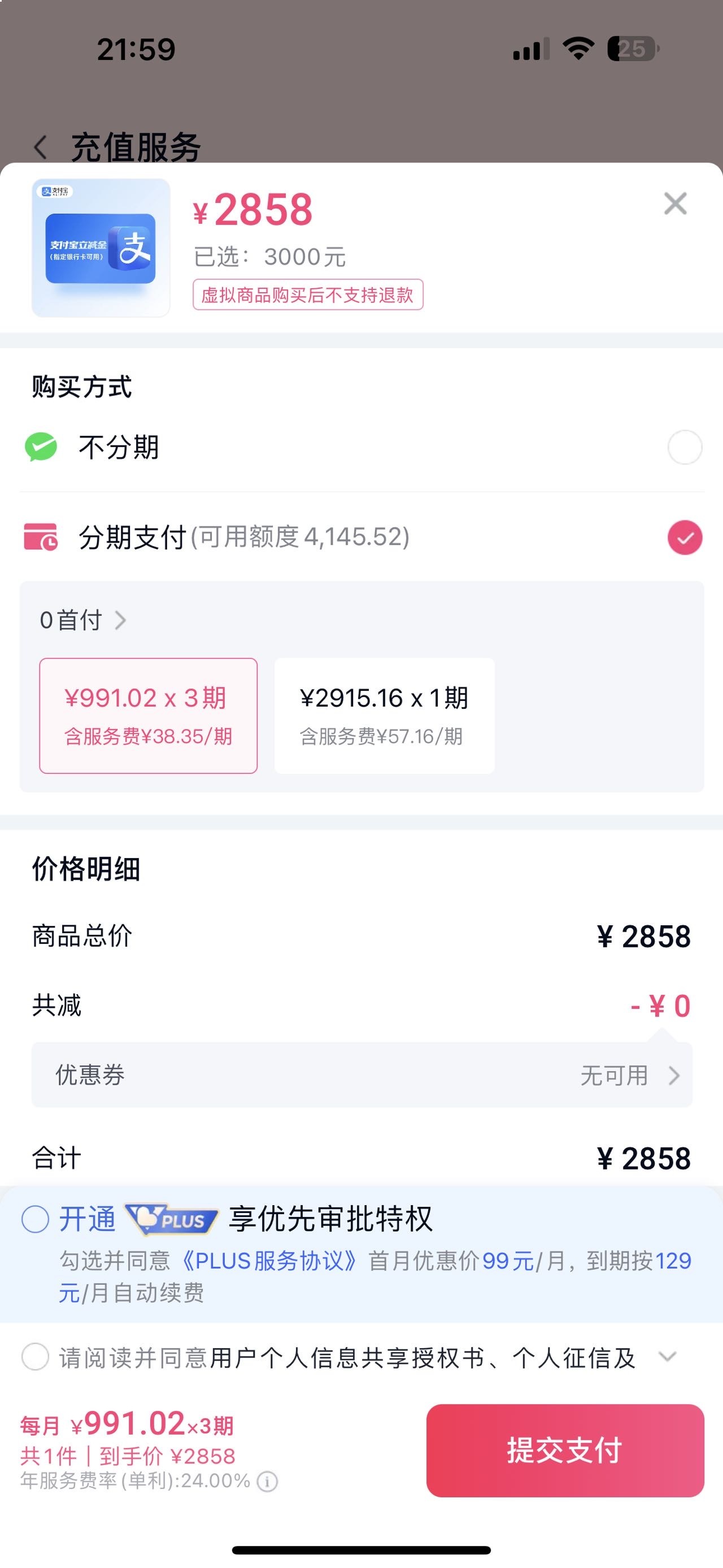 这比高利贷还厉害,2800能真正用得只有2000支付宝立减金,其他八百多都是你要交钱才能充会员,都是几折得会员立减卷,等于借两千三个月还3千这套路满满的