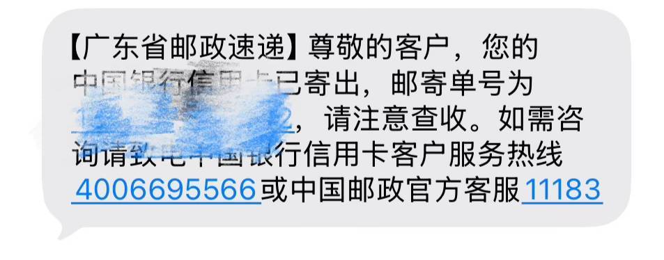 中行plus卡已邮寄,今天是批量寄卡了呀。