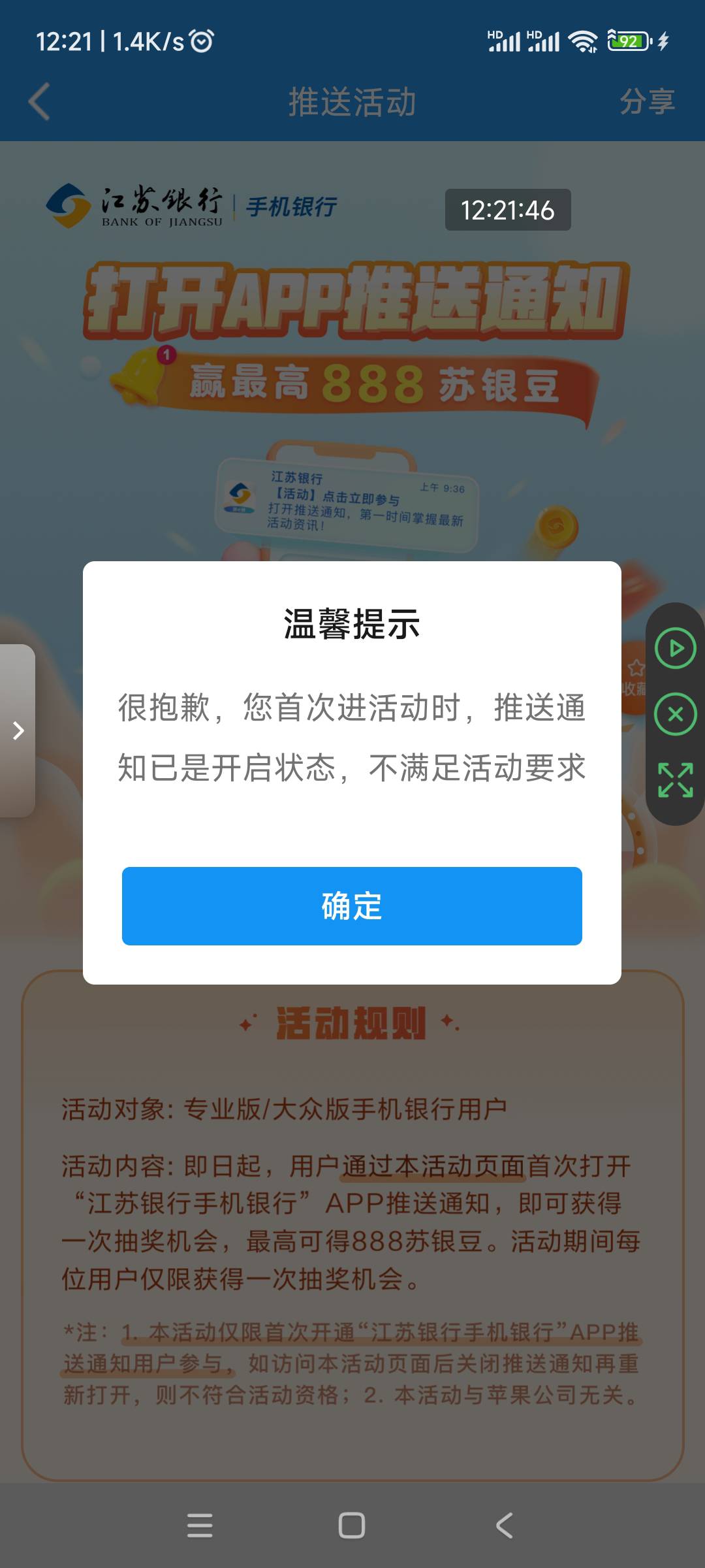 江苏银行签约短信通知+打开app推送通知活动