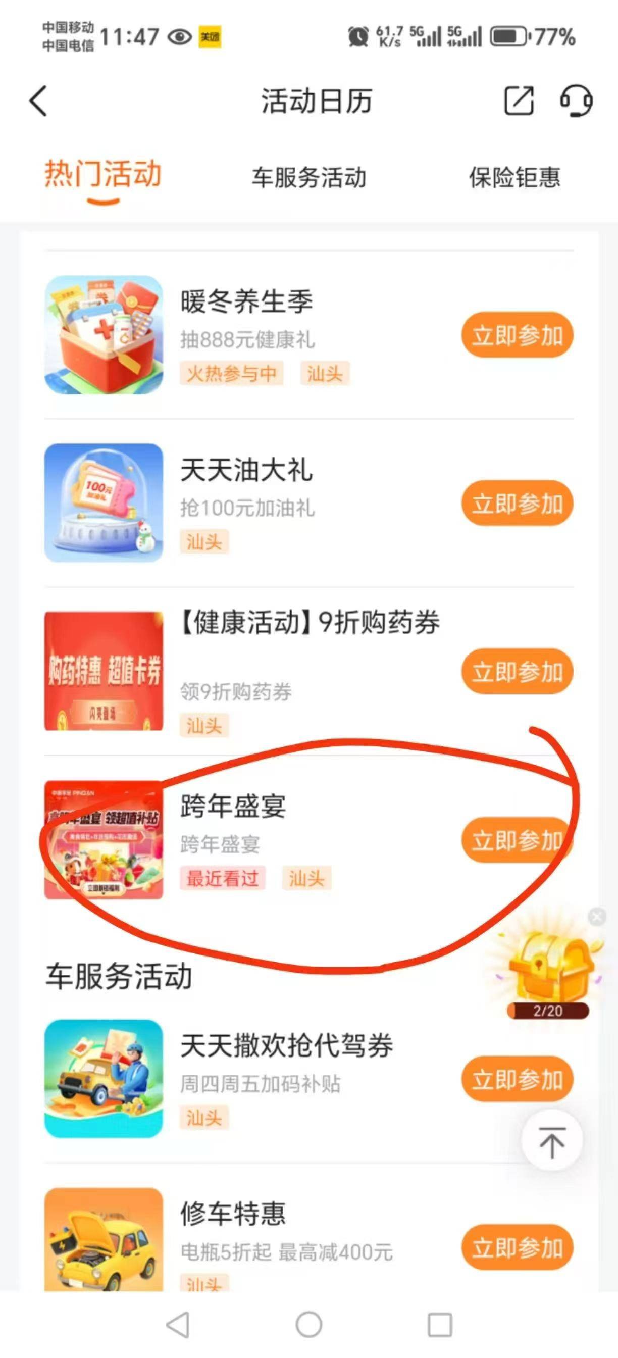 平安好车主改定位汕头,活动中心拉下来找到跨年盛宴  认证车牌要广东的才有入口