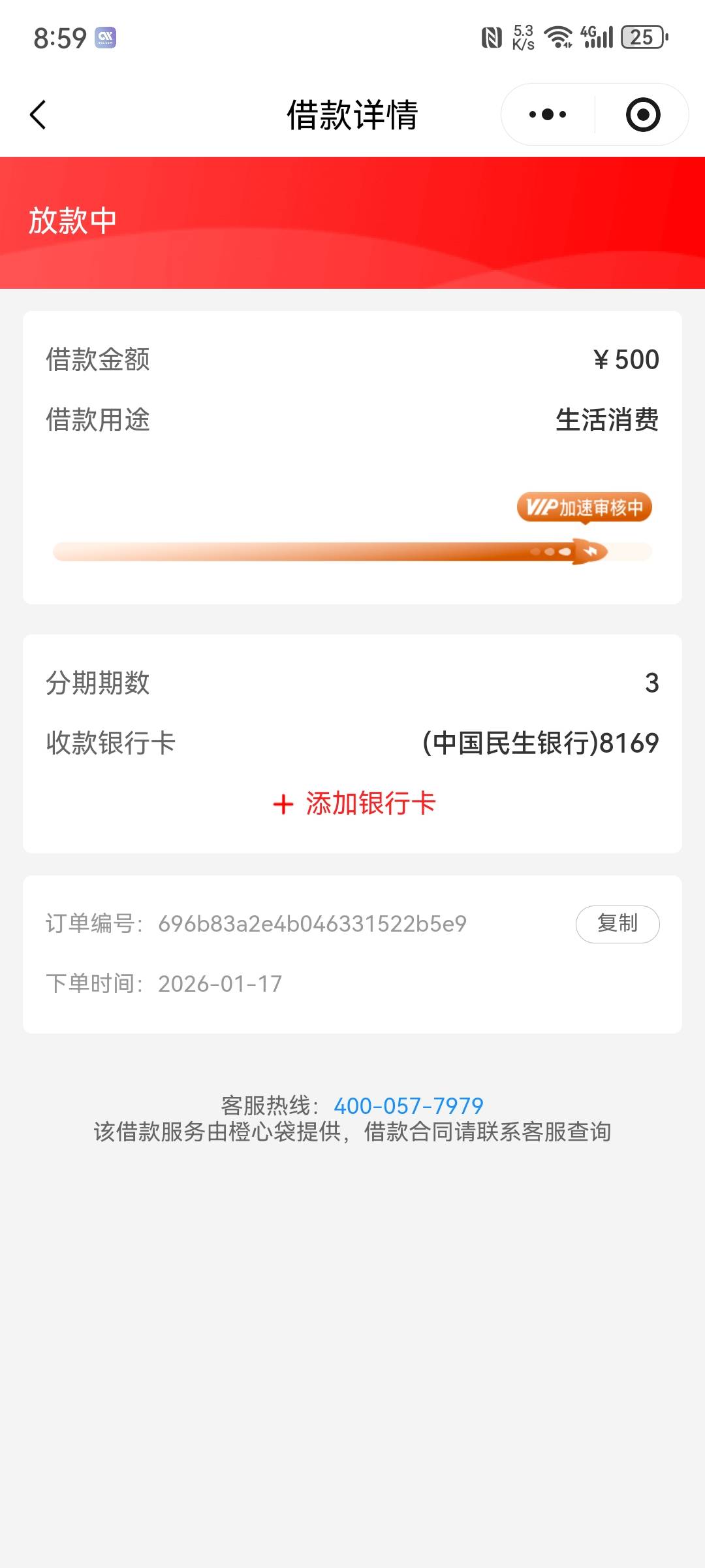 变成500放款中了