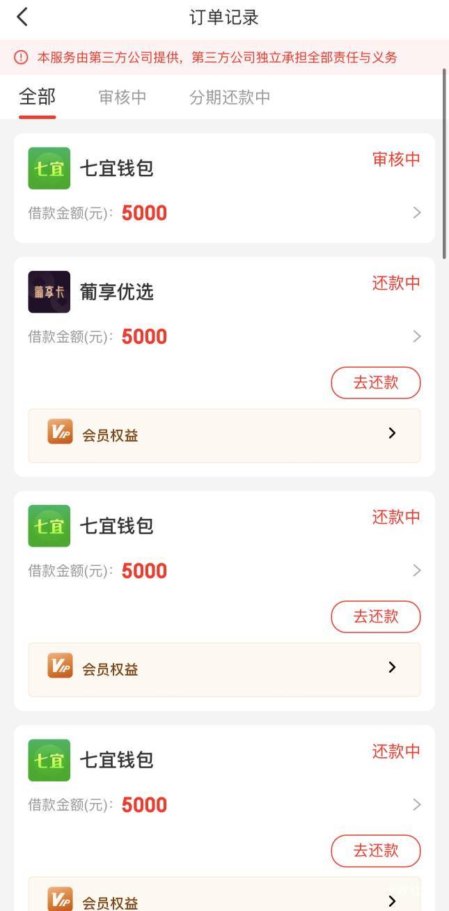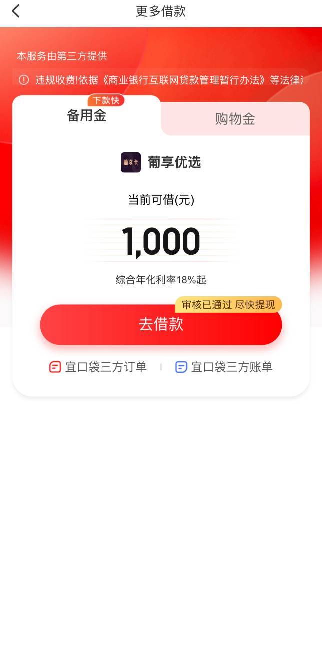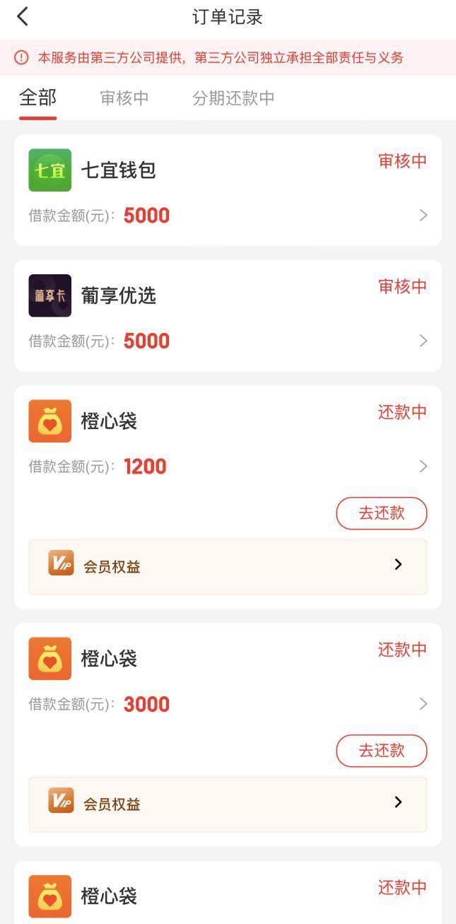 桔多多本体5万额度万年拒,日常每日登陆桔多多点下第三方,之前也连着好几笔拒了,今天突然又可以了,总共6笔,下了3w,扣了399*6。