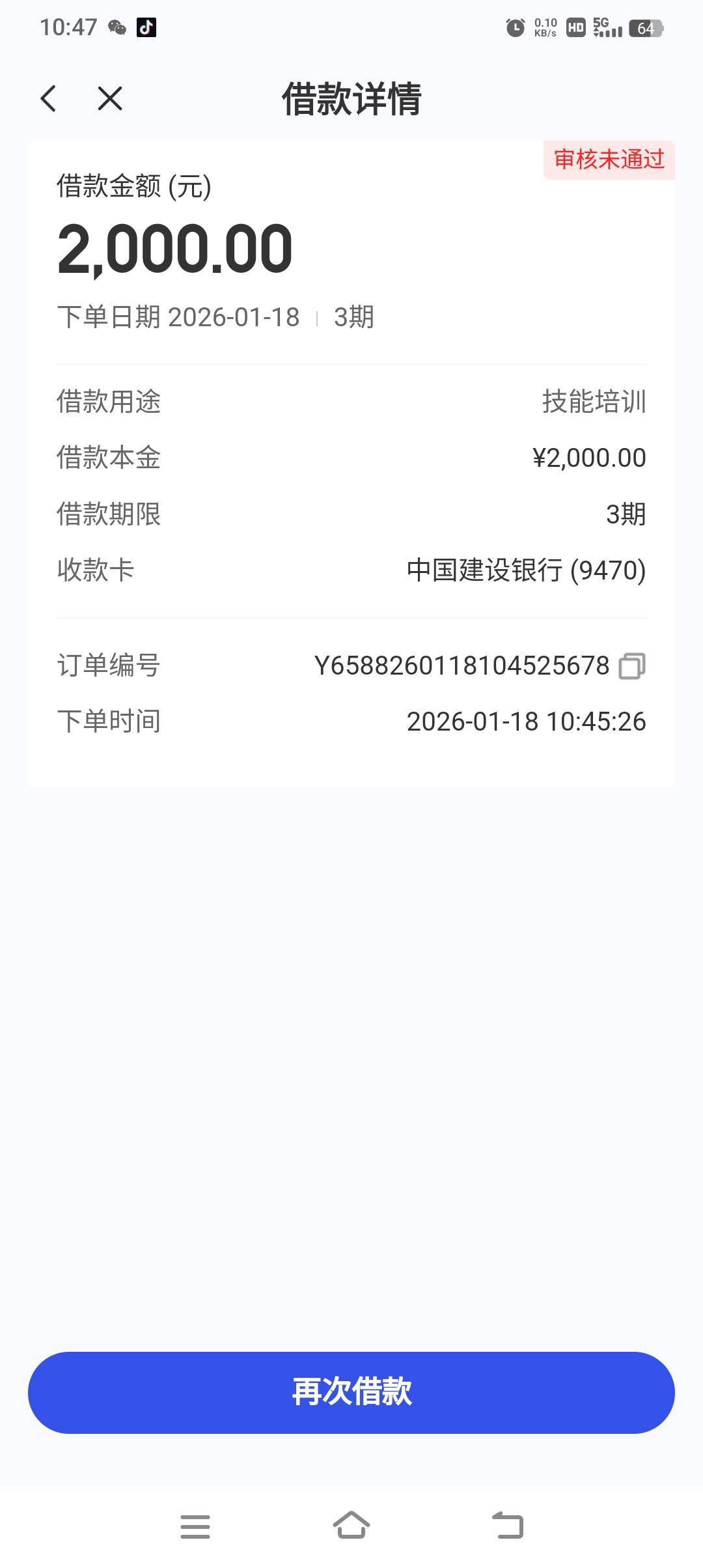 mmmmm333 发表于 2026-01-18 10:50 等等看短信有没有给你别的额度,我刚才秒拒给了我一个500的,目前在审核