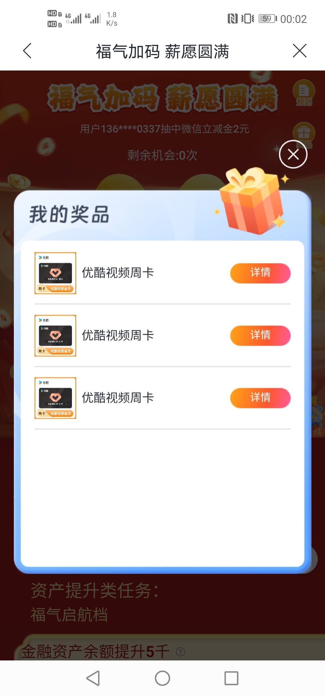 兴业好运兴福年,6中3,可惜优酷周卡降价了