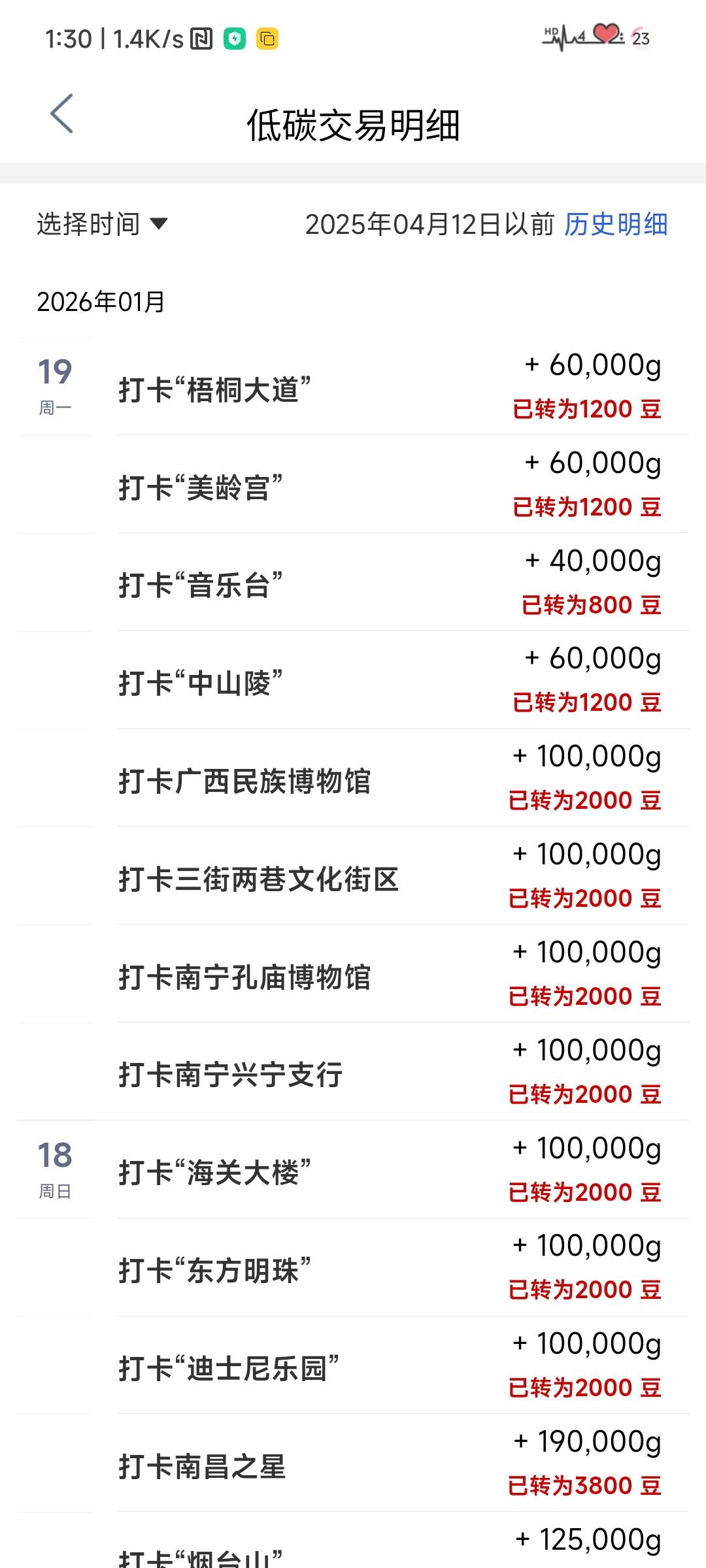 工行今天打卡10次中途失败了两次,一共打了8个地点,明天再打徐州和首都,徐州给的豆子好像比南京的要多一点,首都的几个地点固定1000。豆子攒够了但是看前面帖子某卡宝又抽风了,等恢复正常再说吧