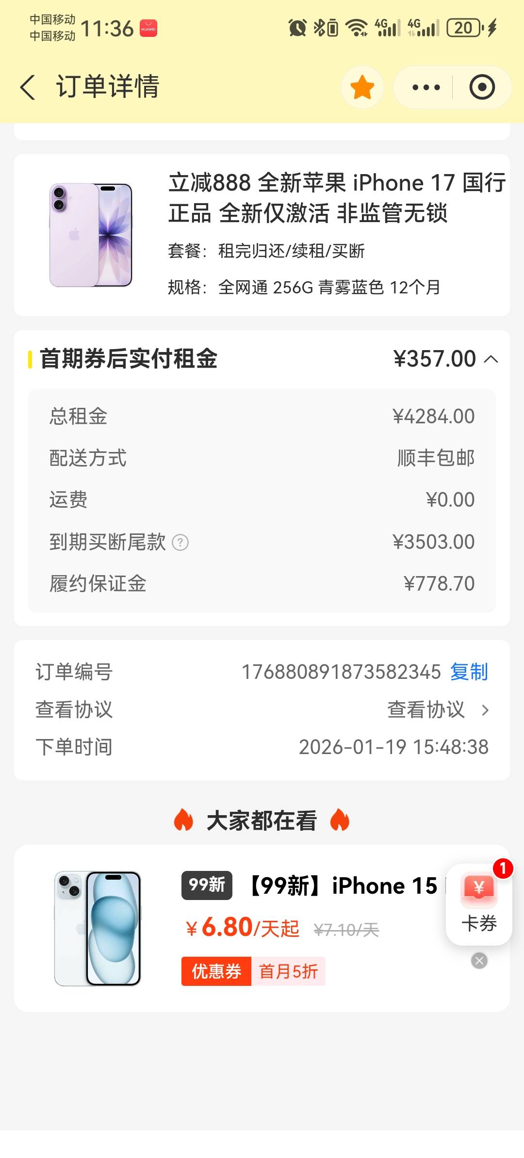 有一个多还租鸡毛啊,买一个二手17才多少