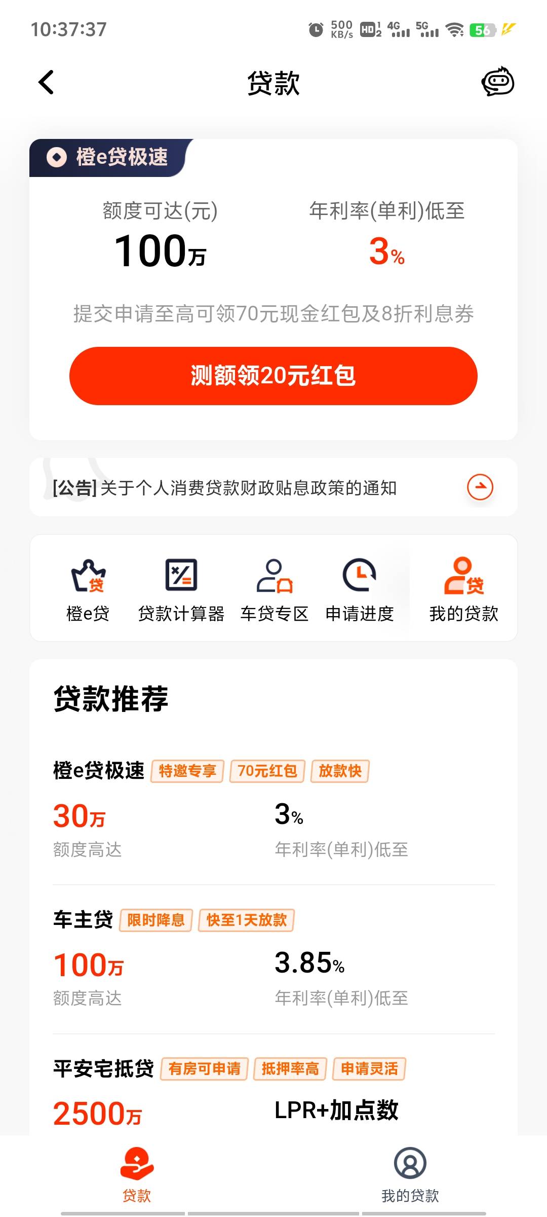 平安贷款里面测额20