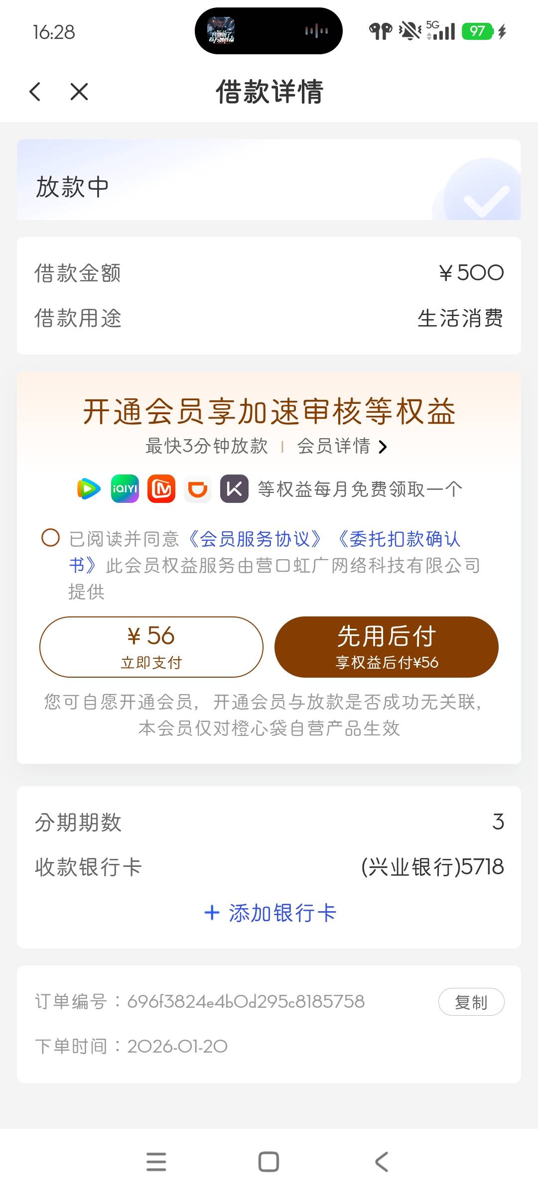 橙心,必须要开会员,不开多久到,会不会放款失败