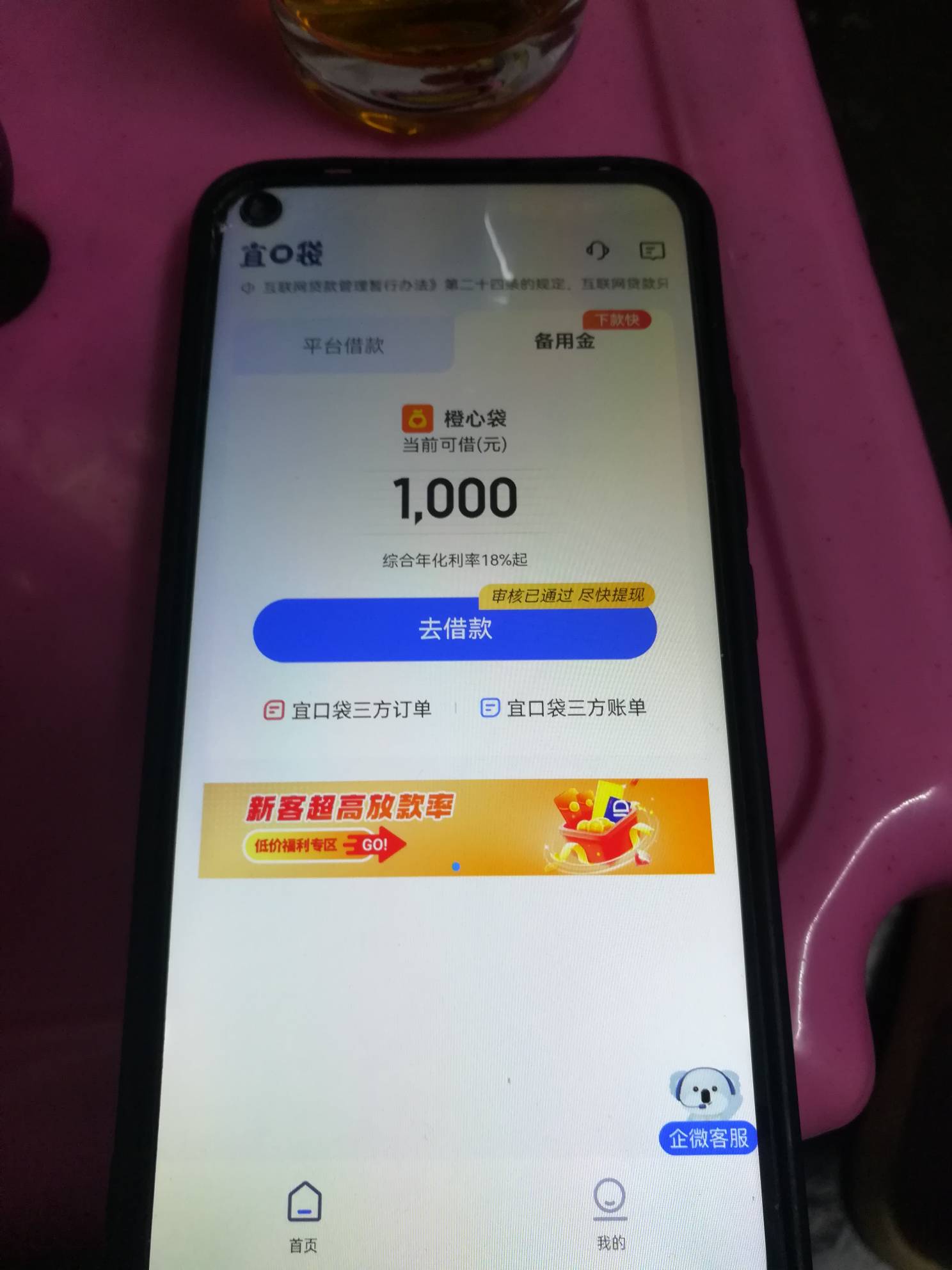 桔多多,宜口袋,橙心袋,都显示一千了, 昨晚橙心袋还重新申请,显示综合分不足, 刚
