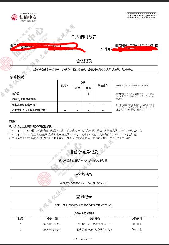 土豆一挖一麻袋 发表于 2026-01-21 14:08 真白啊,好征信。没逾期也没有啥查询。爽死了