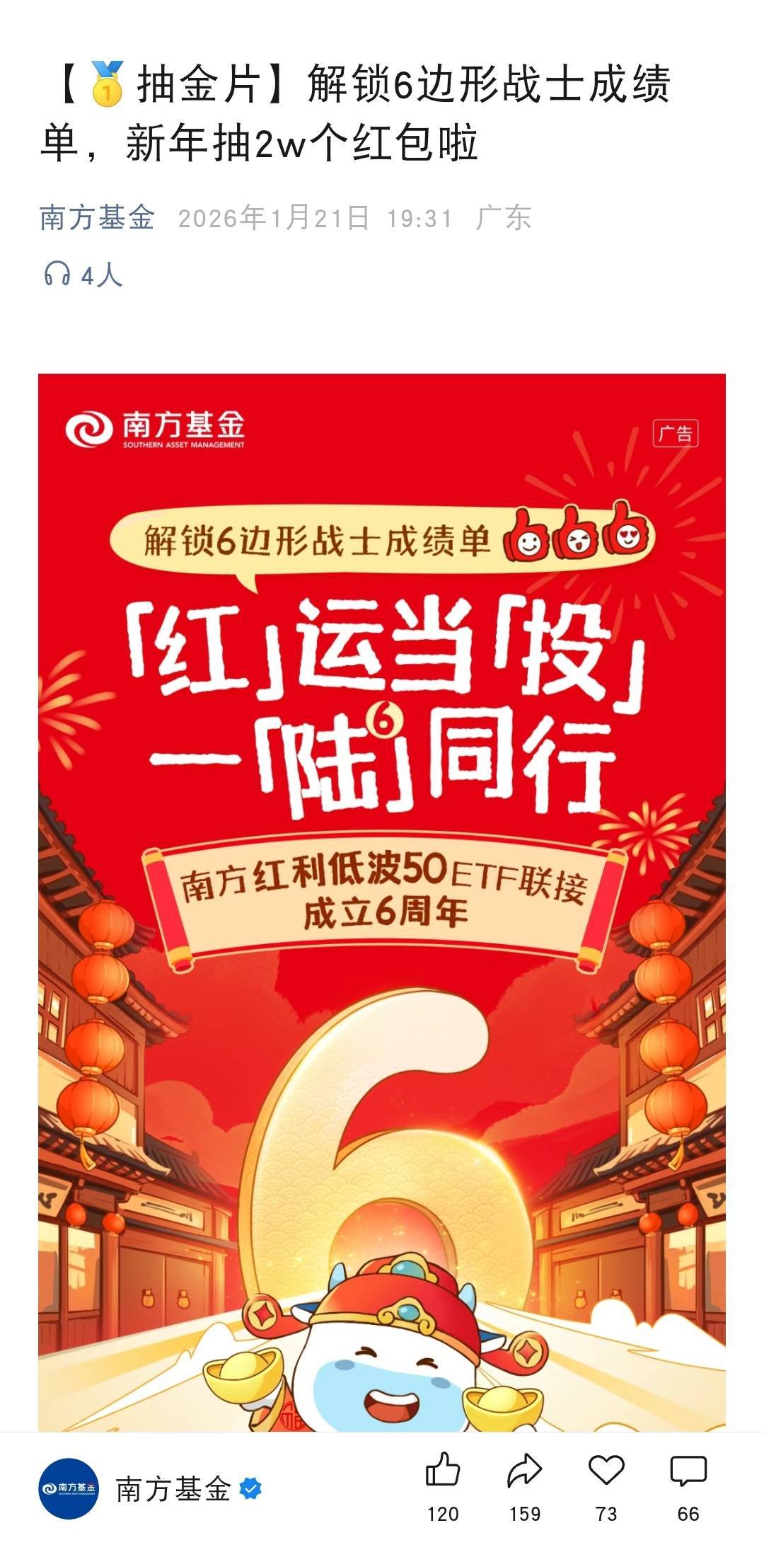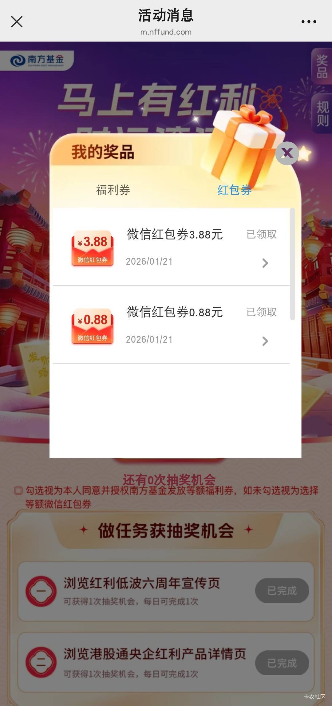 南方基金抽红包活动