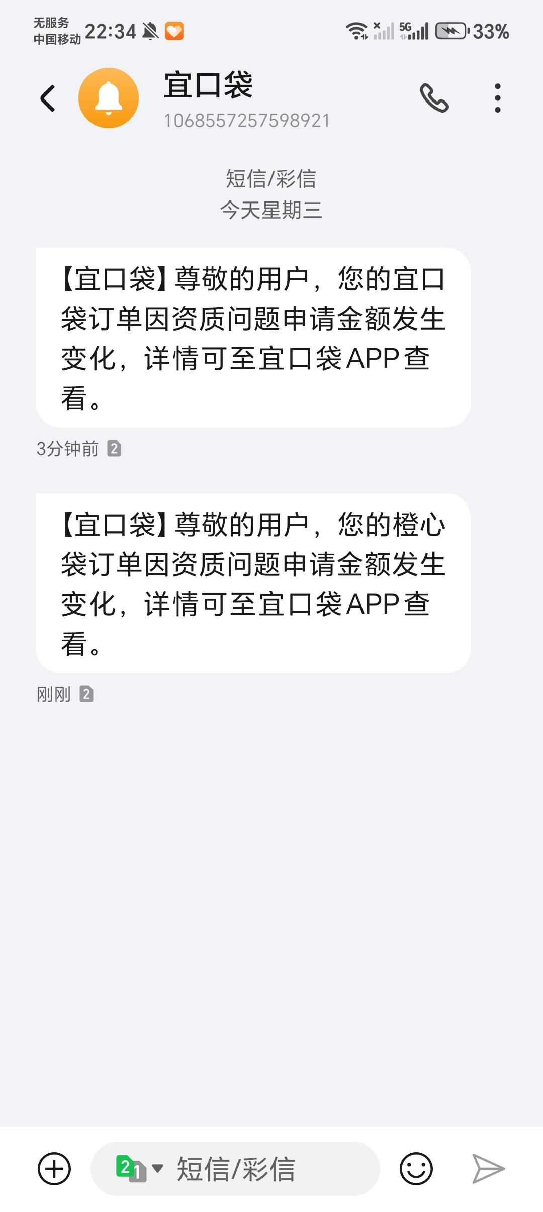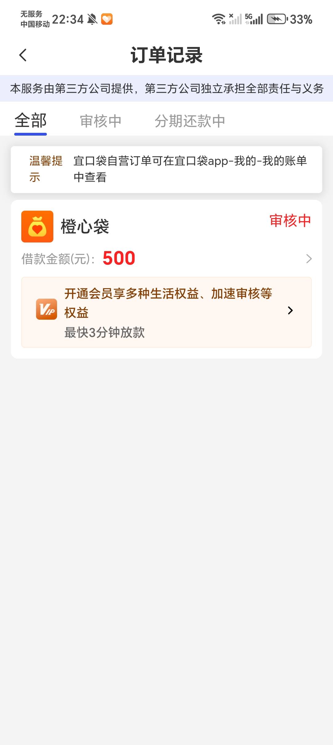 橙心袋已拒绝 一口袋审核中