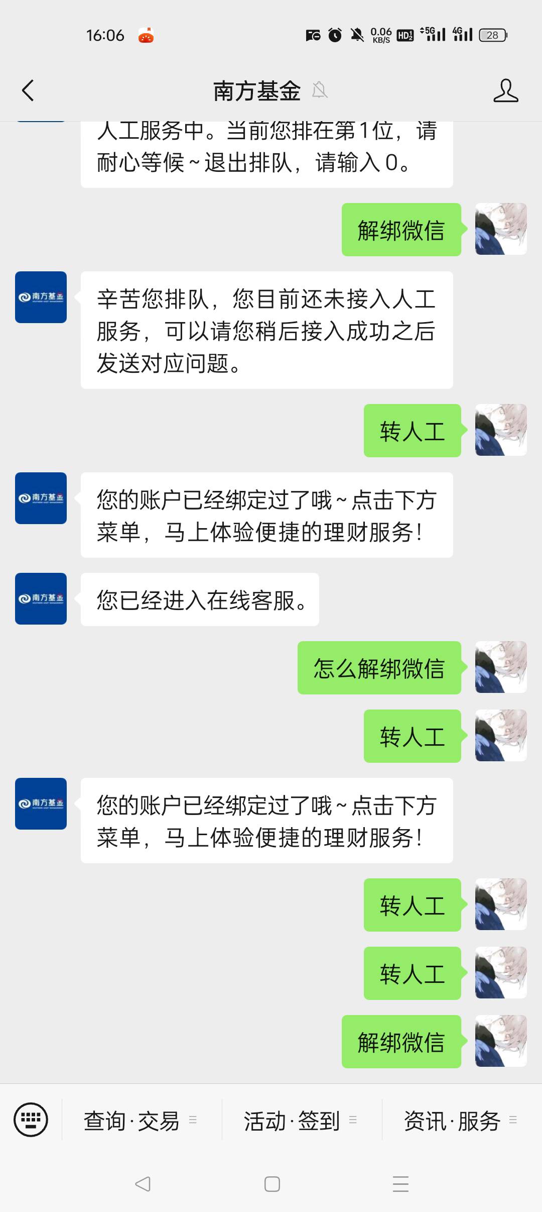 可以,别进人工,点进客服直接发解绑微信,它会自动跳出解绑的链接