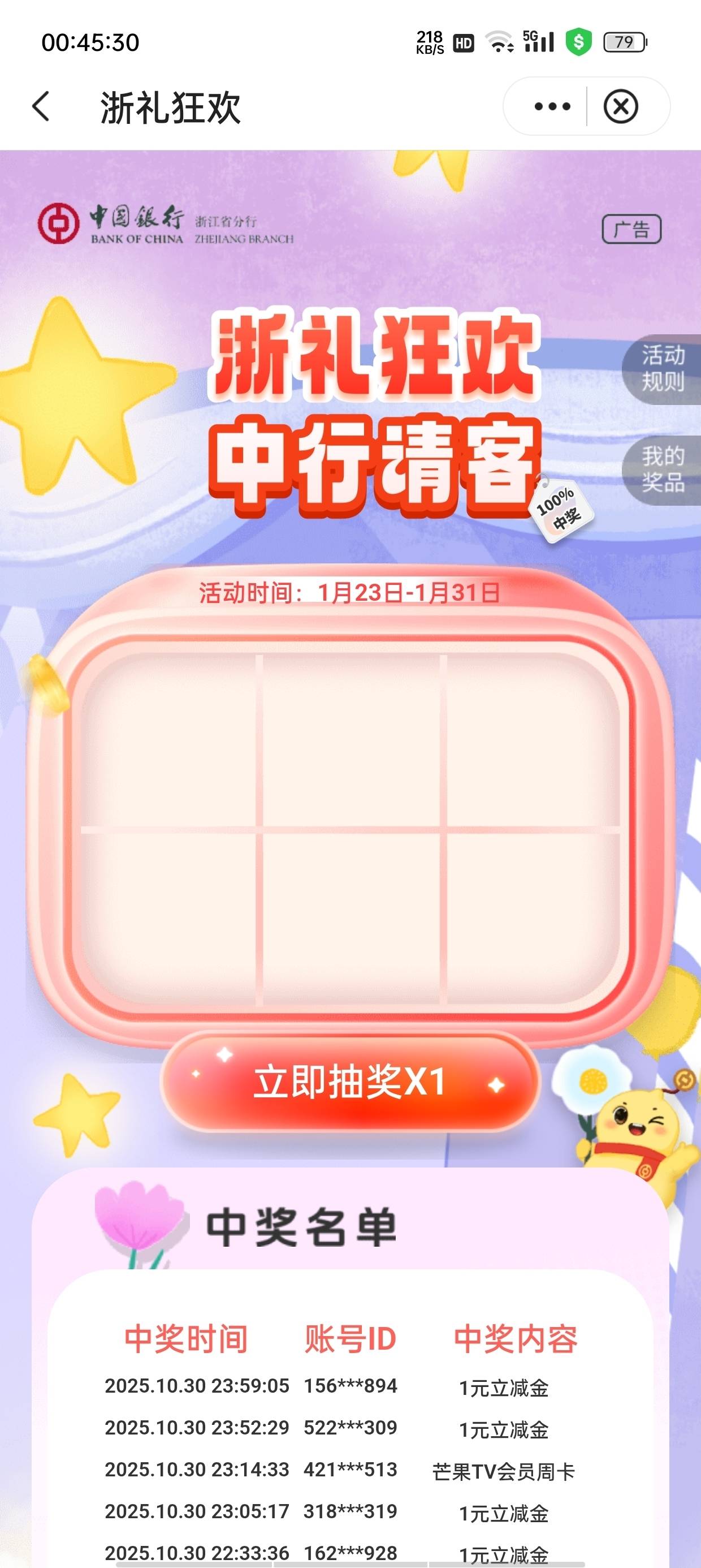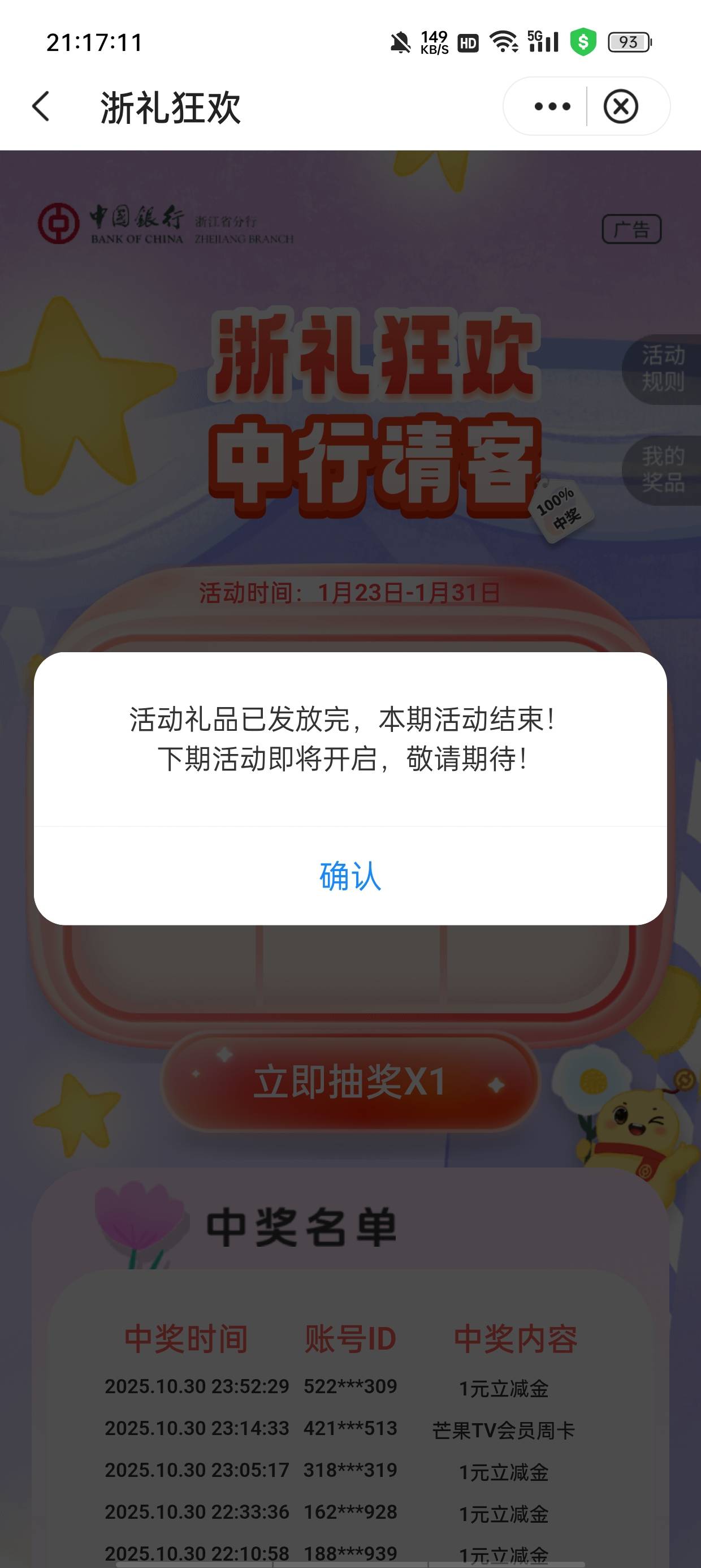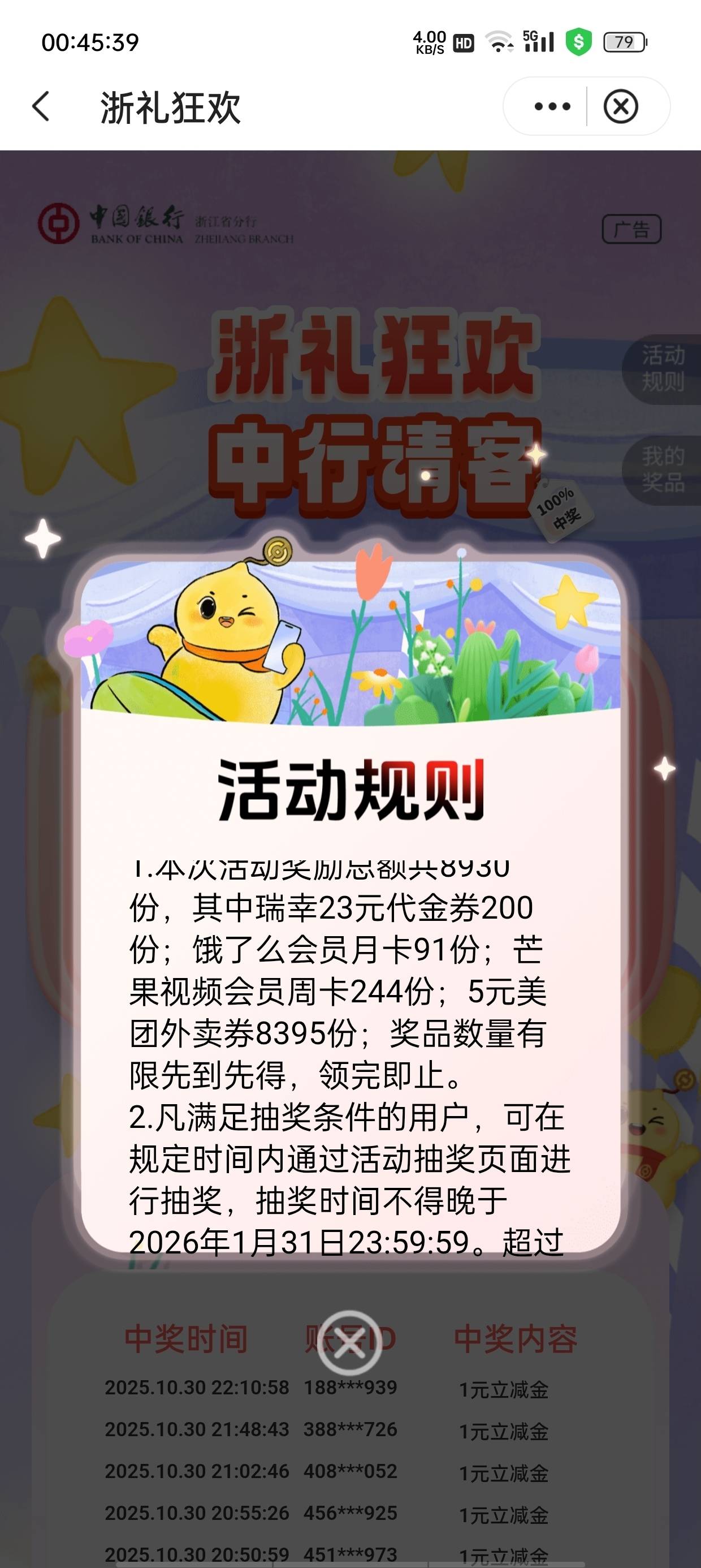 浙江中行 明天人人5元美团外卖券