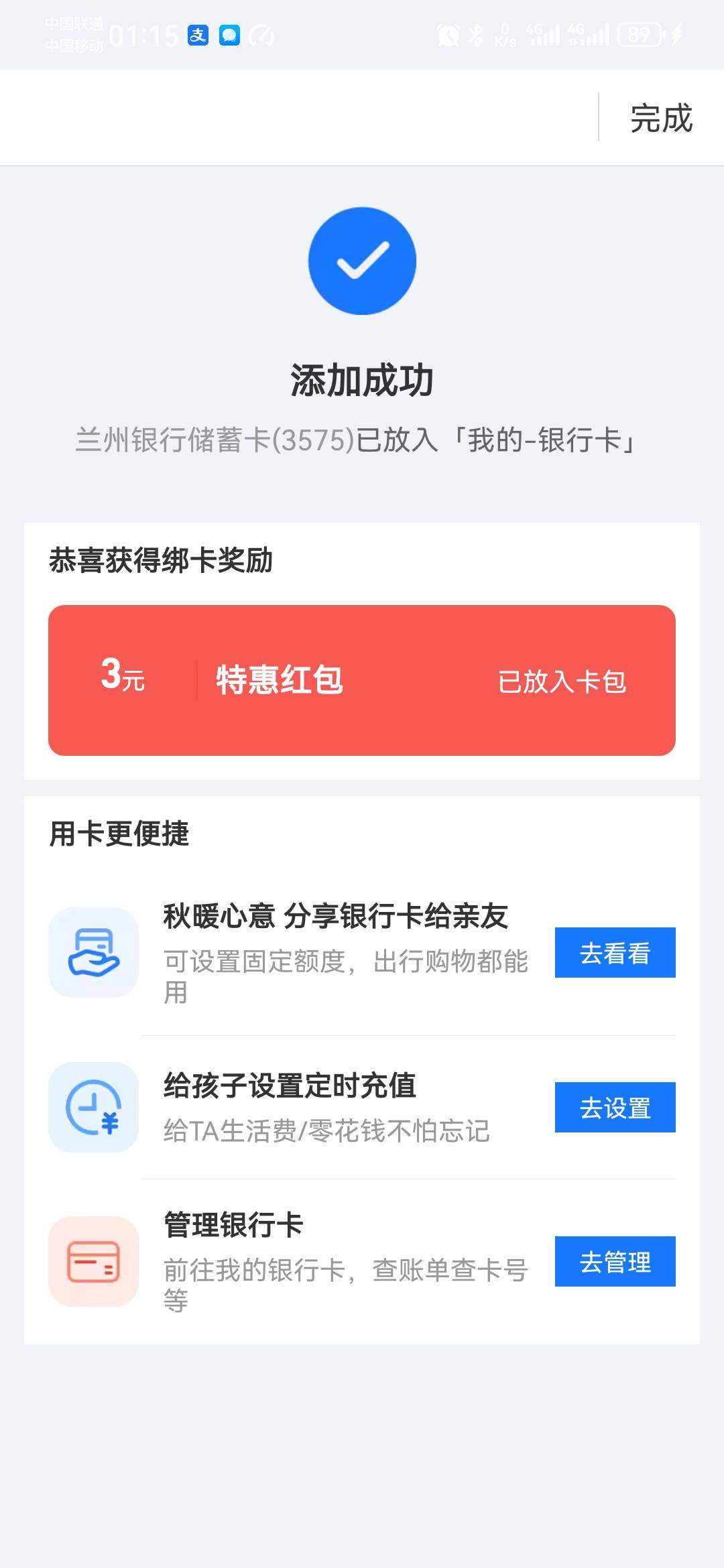 兰州银行绑卡支付宝3元特惠红包活动