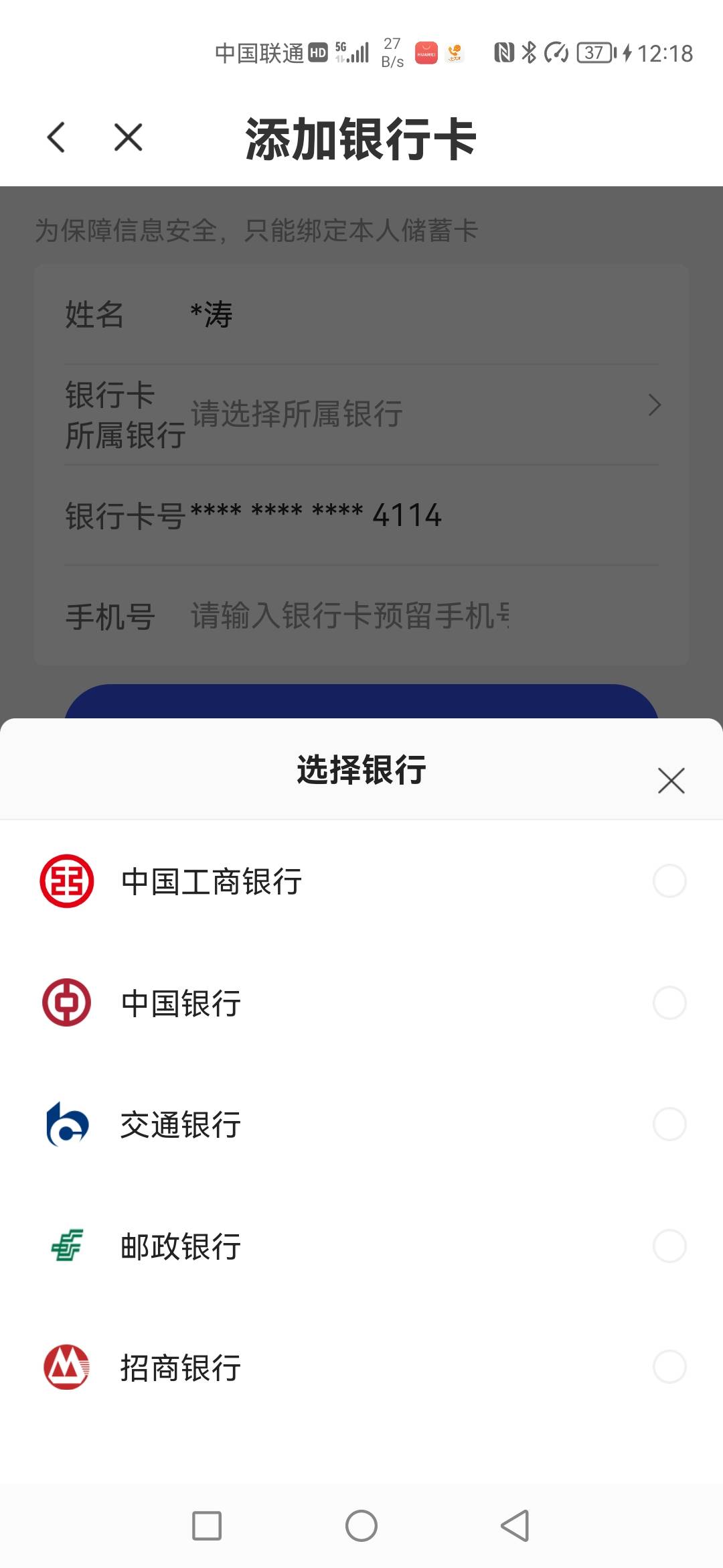 第一次绑的建行的不给过,这不备用机出了1000建行的卡帮不上,没有建行选项,是不是废