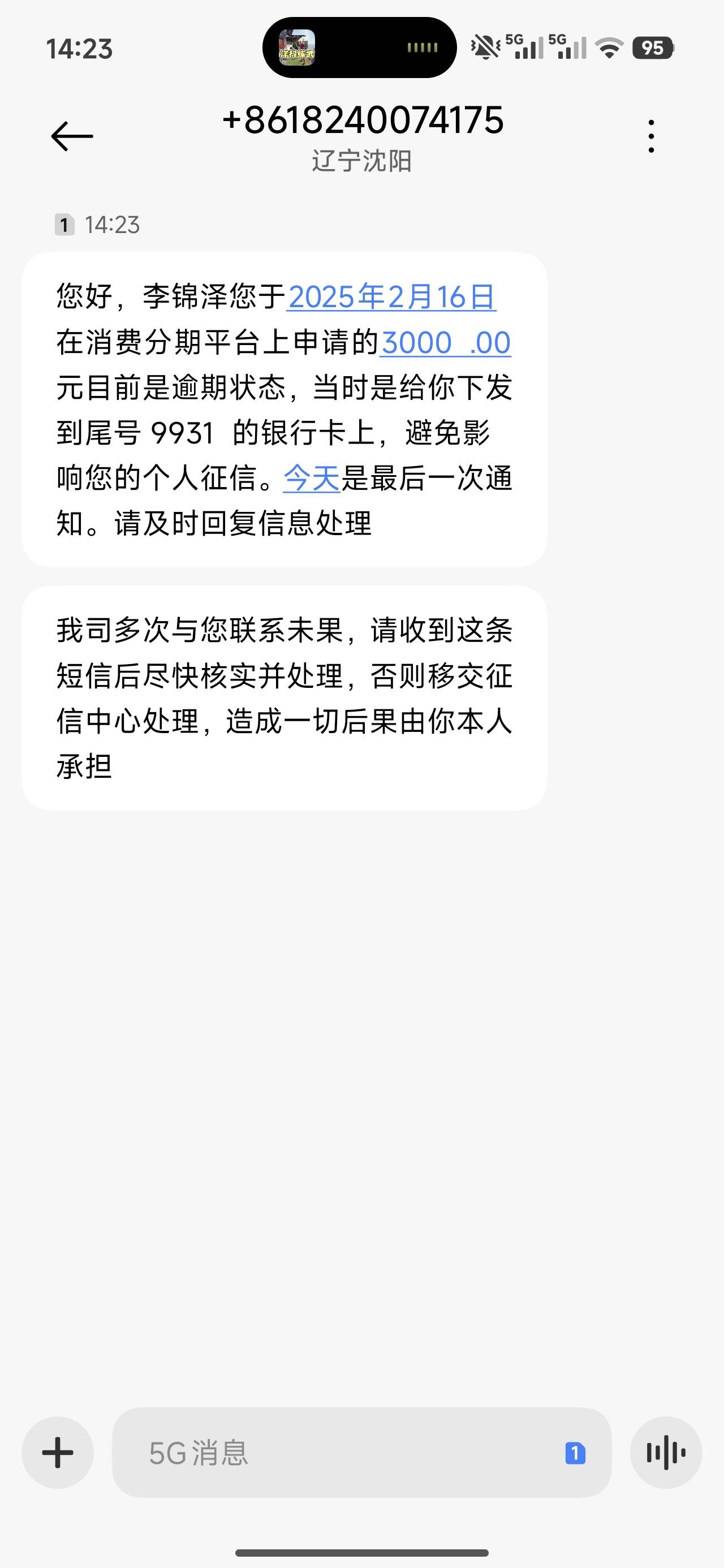 家人我之前贷款全还清了 今天莫名其妙来这个短信 是骗子吗