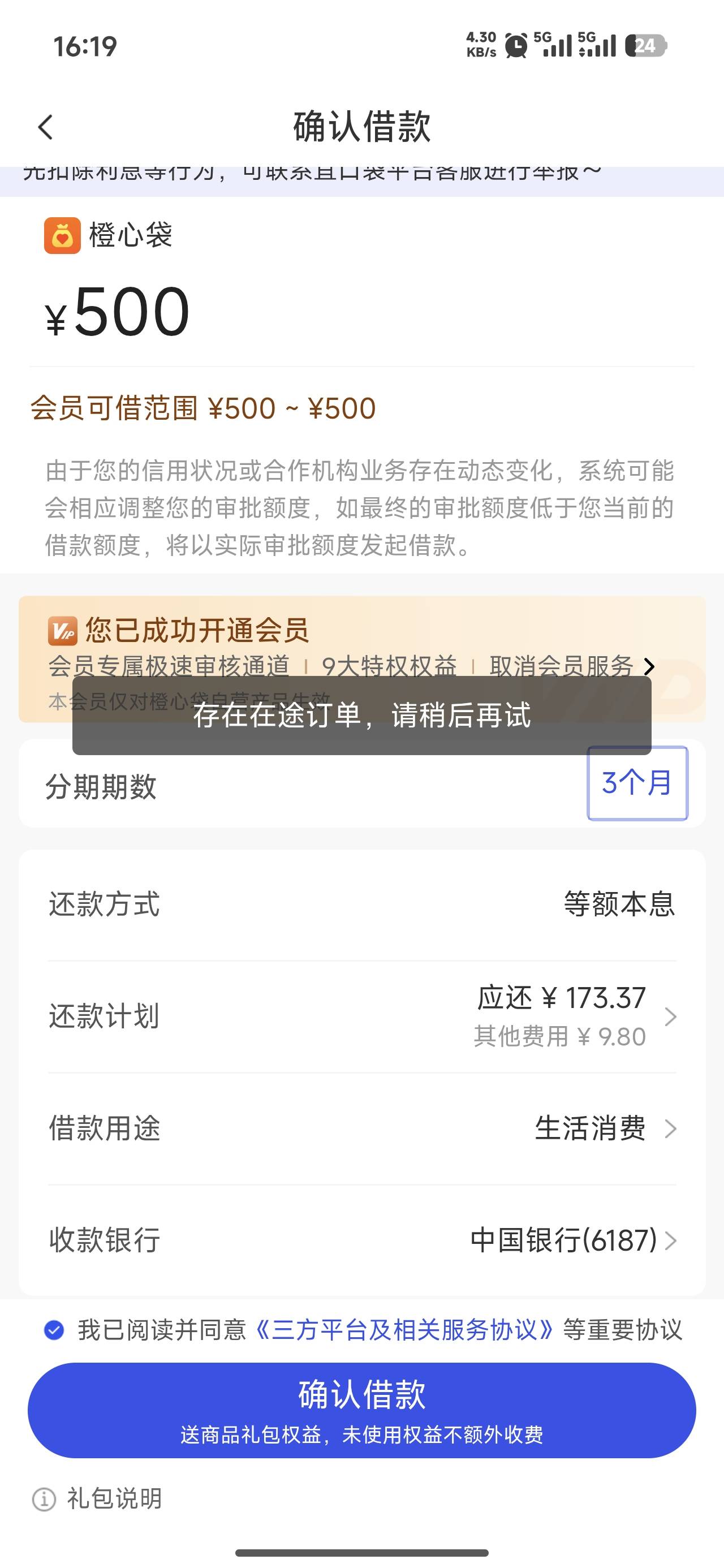 君只为红颜醉 发表于 2026-01-23 16:38 你有笔借款在审核中 肯定不能在申请了