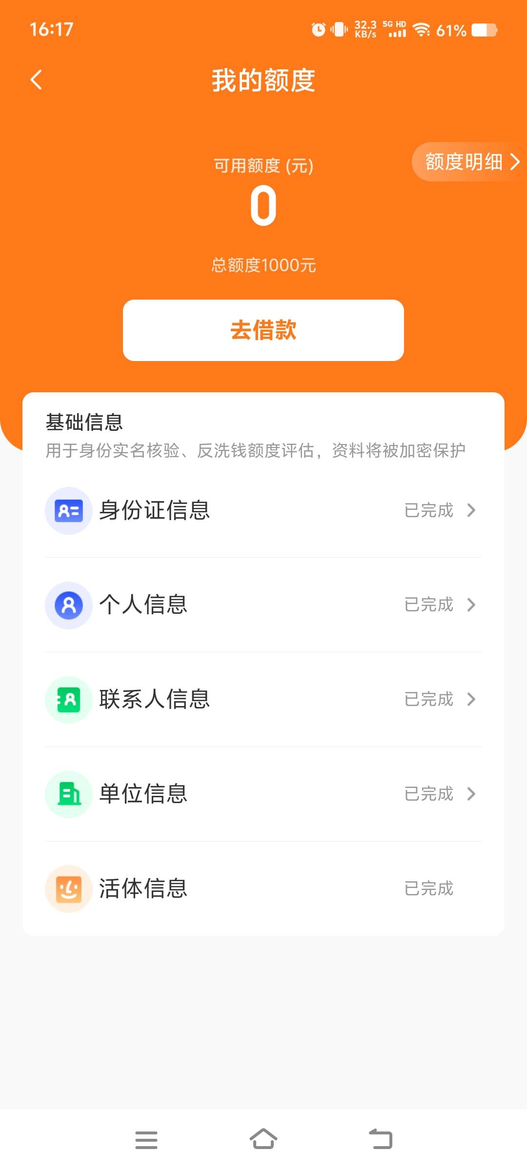 刚借完是没有额度的