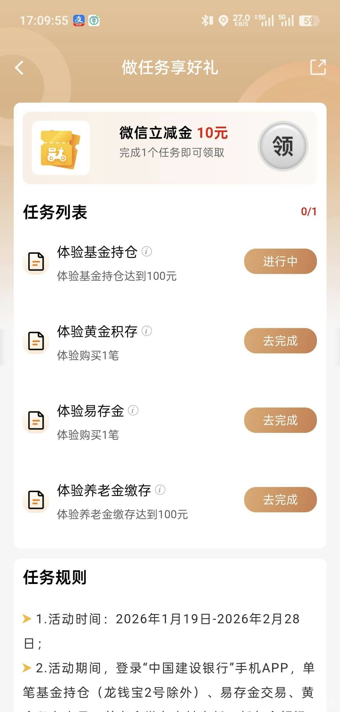 建行做任务享好礼活动