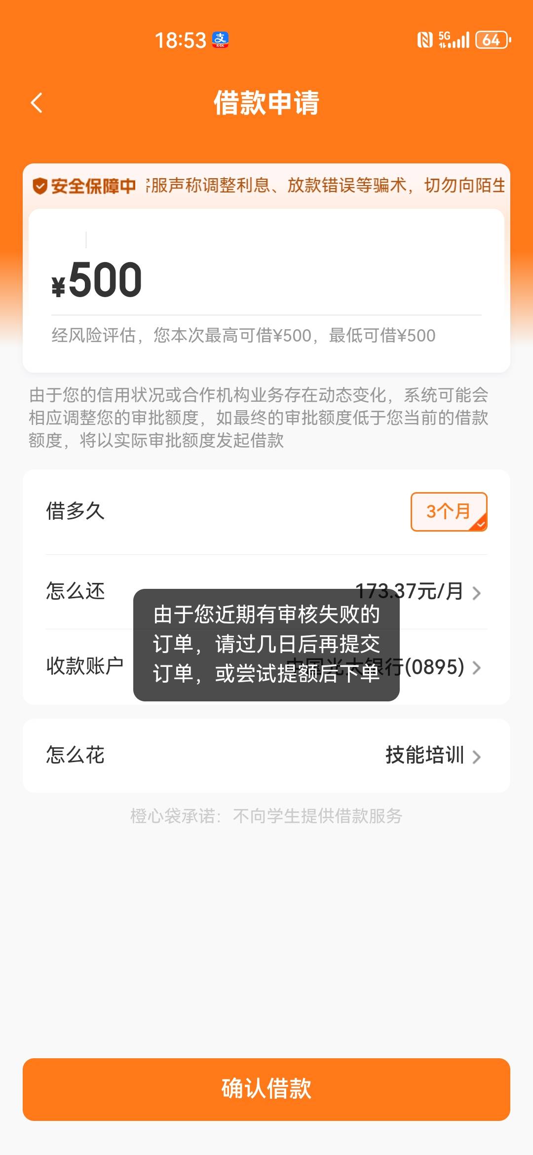 取消订单就这样了,客服说一个工作日恢复额度再申请,但是看一直有额度啊