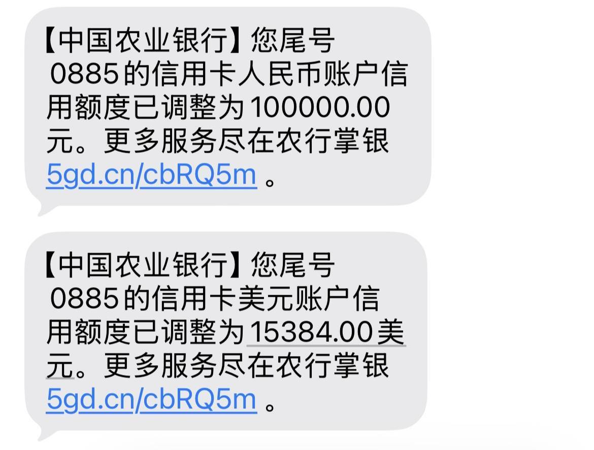 农行精粹白提升额度秒P,前两天收到光大紫麒麟提升额度的短信(4-8),因为不咋用那卡