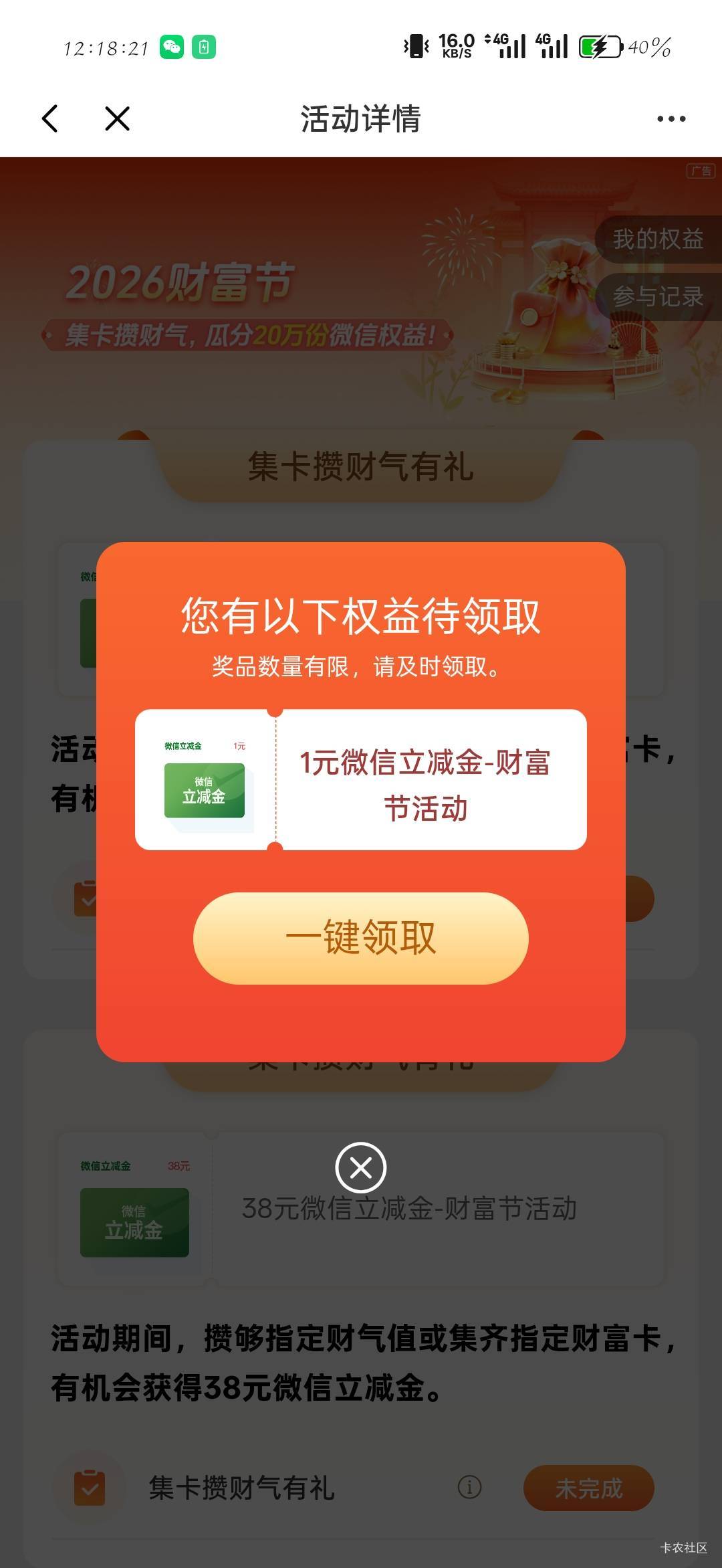 凌晨_ 发表于 2026-01-24 12:37 赞30财气 抽最高1立减金 我抽了0.3是红包不是立减金