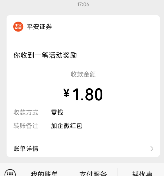 平安证券加企微领1.8元现金红包活动
