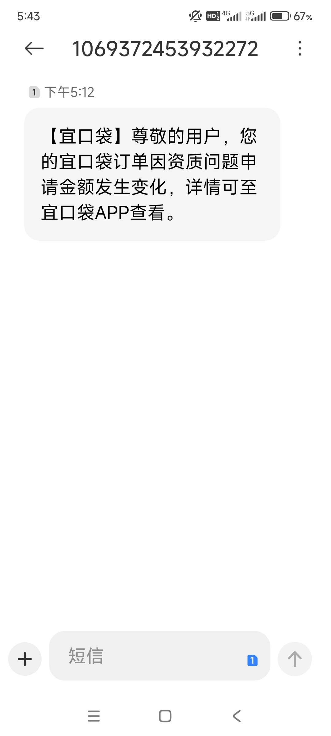 宜口袋又下500.也不知怎么了就五百五百下,审核拒绝,来短信资质发生变化,登陆上去500审核中买了会员秒下了